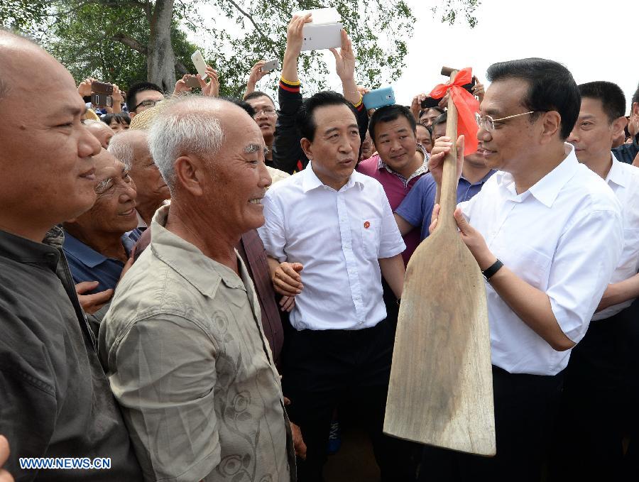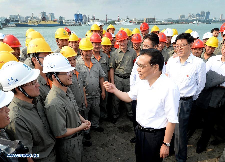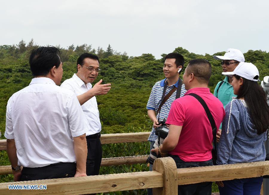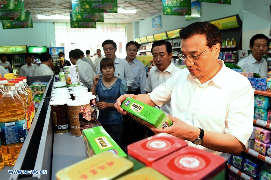 Chinese Premier Li Keqiang (front), also a member of the Standing Committee of the Political Bureau of the Communist Party of China (CPC) Central Committee, selects snacks at a store in Haikou, south China's Hainan Province, April 11, 2014. Li paid an inspection tour to south China's Hainan Province from April 10 to 11 after attending the Boao Forum for Asia (BFA) Annual Conference 2014. (Xinhua/Liu Jiansheng)