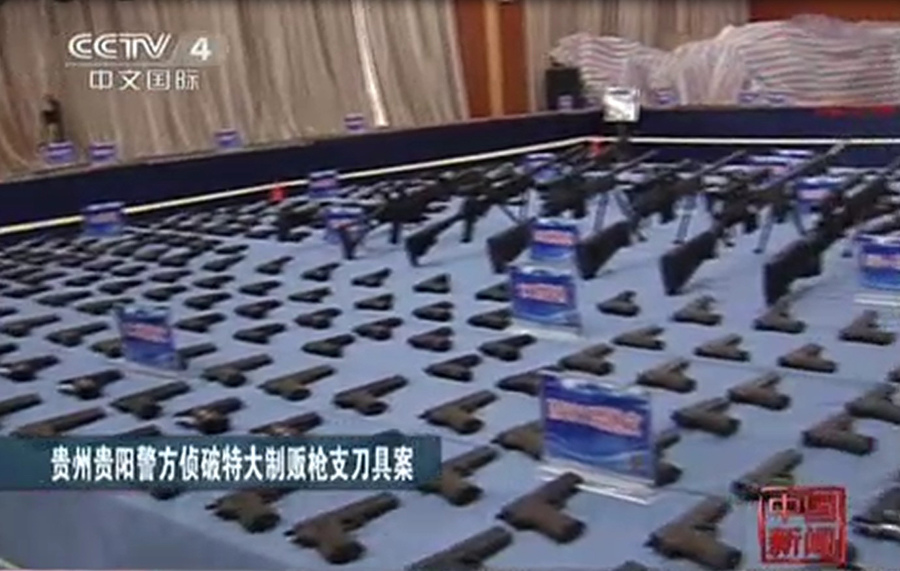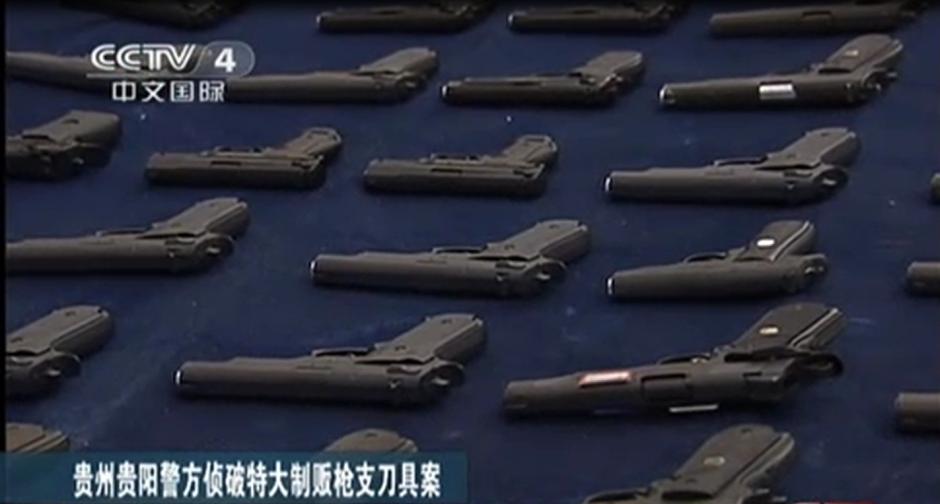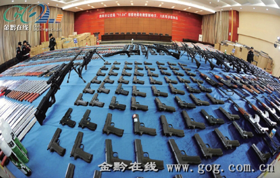 Guizhou police broke up a gang that was manufacturing and selling weapons and confiscated about 15,000 guns and 120,000 controlled knives, the largest such seizure ever in China. The criminal network covers 27 provincial regions and cities including Hunan, Guangdong, Sichuan and Guizhou, China Central Television said on Saturday. [Photo/gog.com.cn]