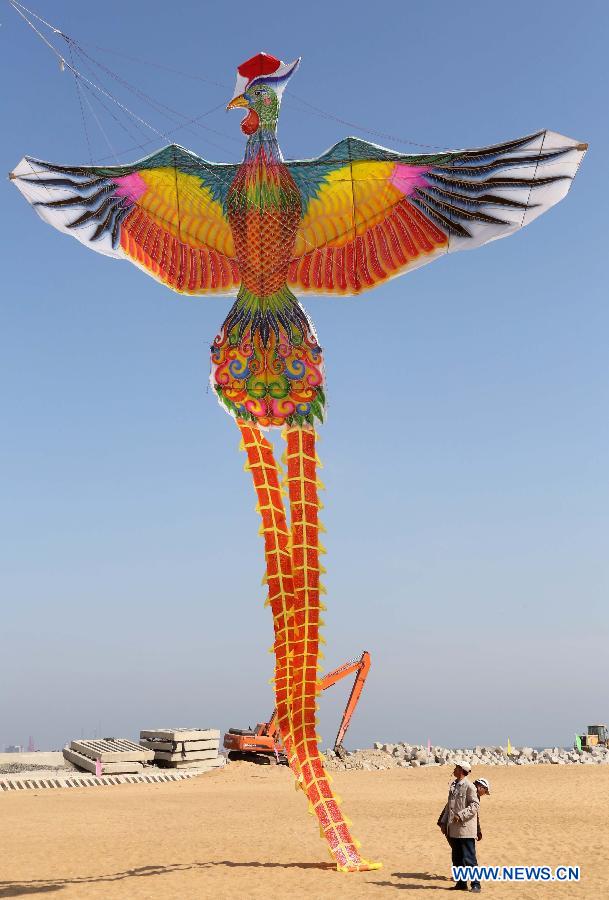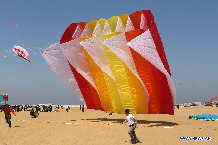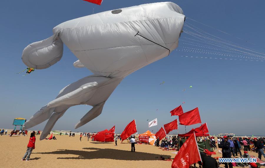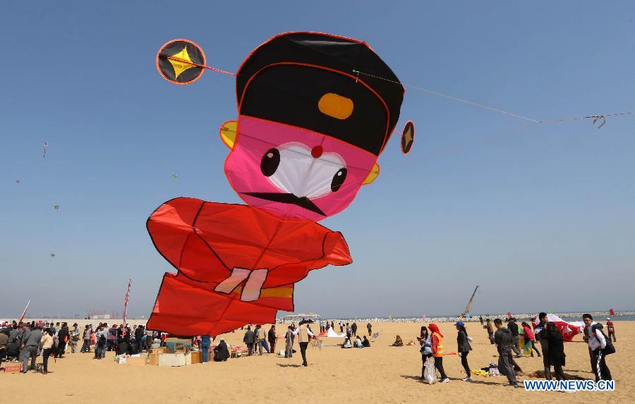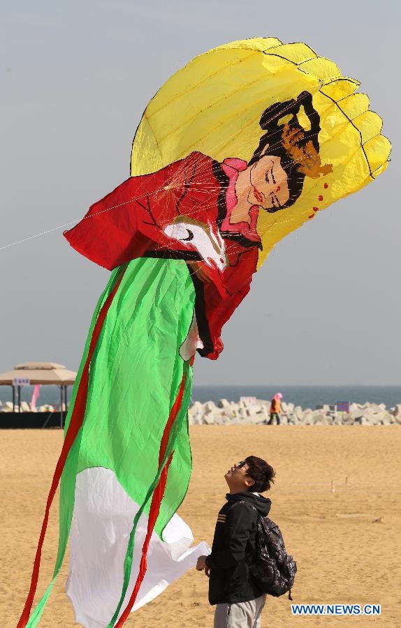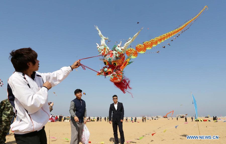 A man flies a dragon-head kite during a kite flying contest in Weifang, east China's Shandong Province, April 16, 2014. Over 1,100 kites were flied on the event here on Wednesday. (Xinhua/Zhang Chi)