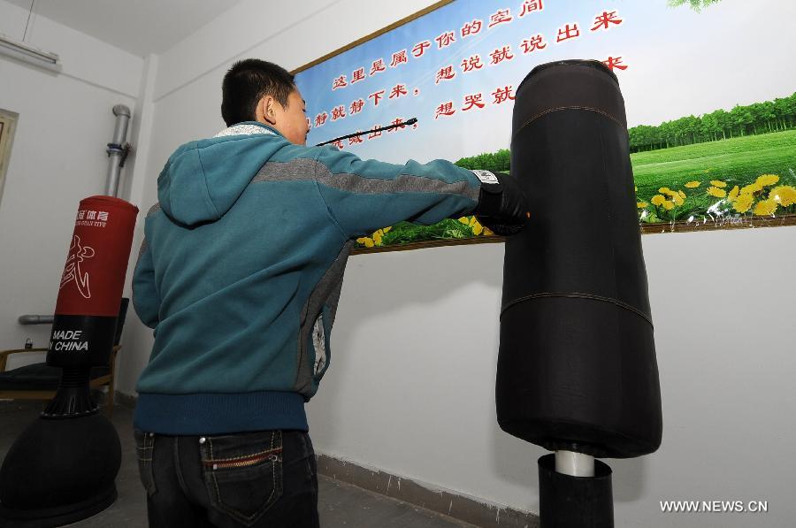 Students receive counselling at a counselling room in Yingtou middle school of Yuanzhou District in Guyuan City, northwest China's Ningxia Hui Autonomous Region, April 17, 2014. Most of the more than 900 students at Yingtou middle school are left-behind children whose parents work outside throughout the year. The school sets up a counselling room to help them solve their growing psychological problems. (Xinhua/Li Ran)