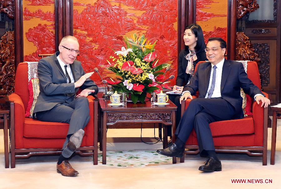 Chinese Premier Li Keqiang (R) meets with Robert Thomson, Chief Executive of News Corp, in Beijing, capital of China, April 17, 2014. (Xinhua/Yao Dawei)