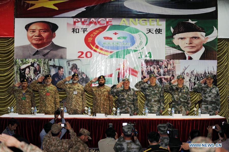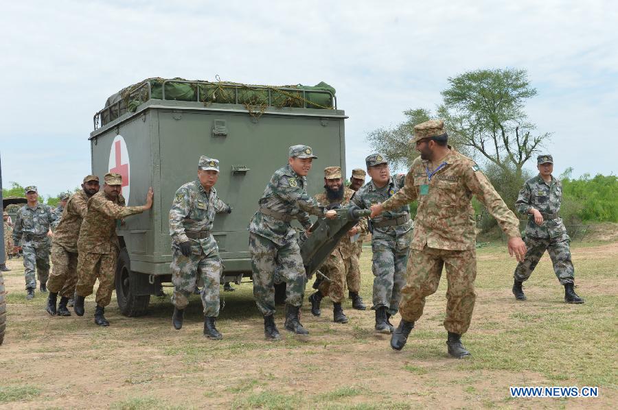 Chinese and Pakistani military personnel take part in the joint Peace Angel - 2014 exercise in Pakistan, April 19, 2014. (Xinhua/Huang Zongzhi)