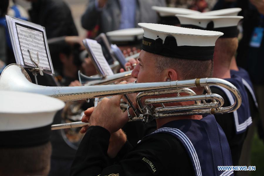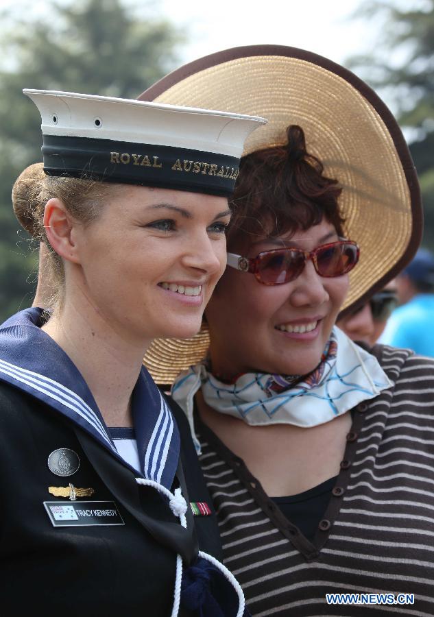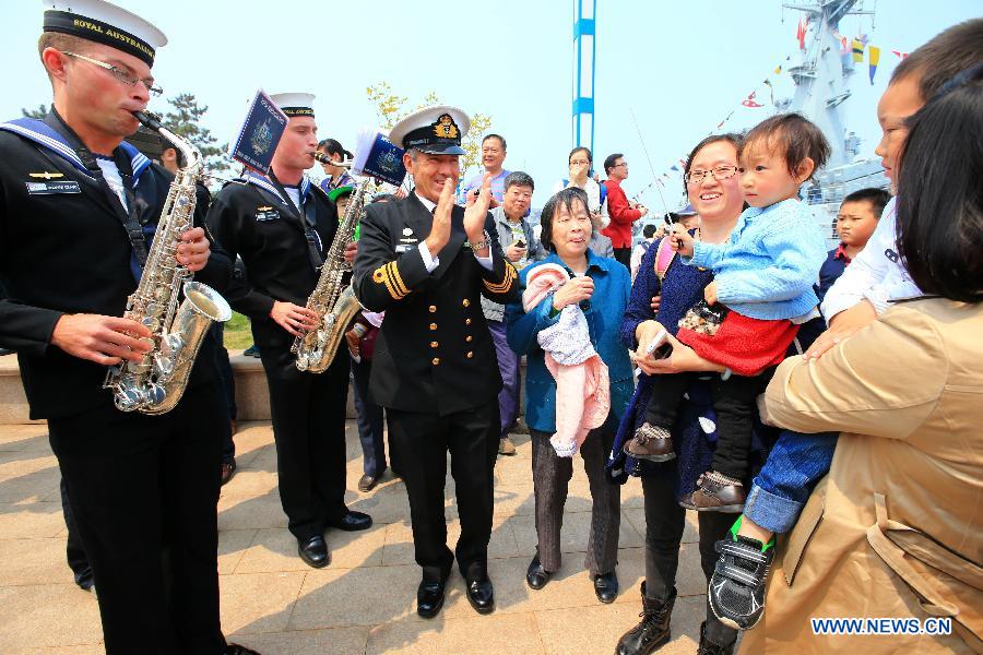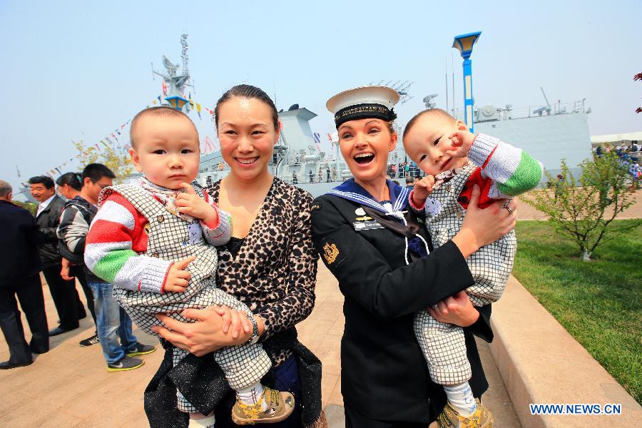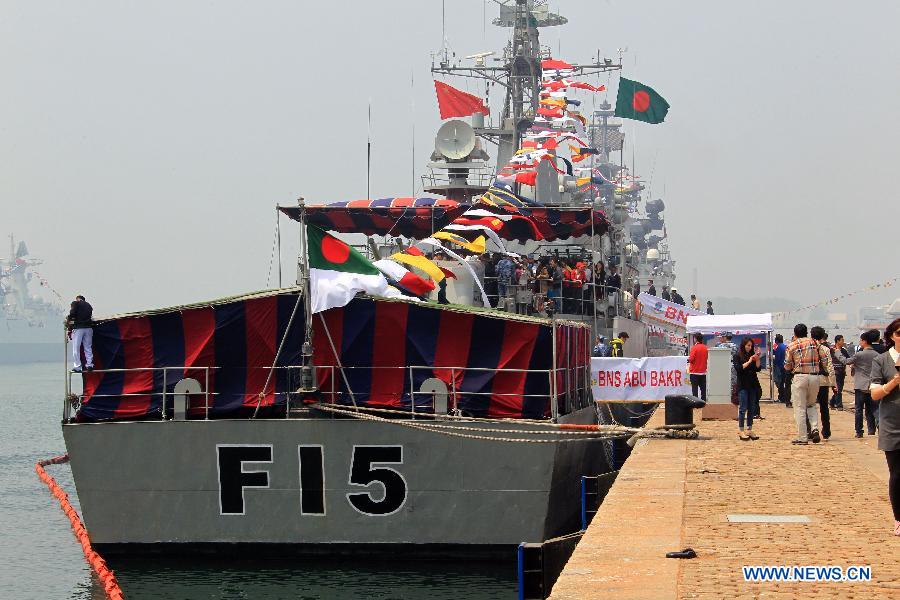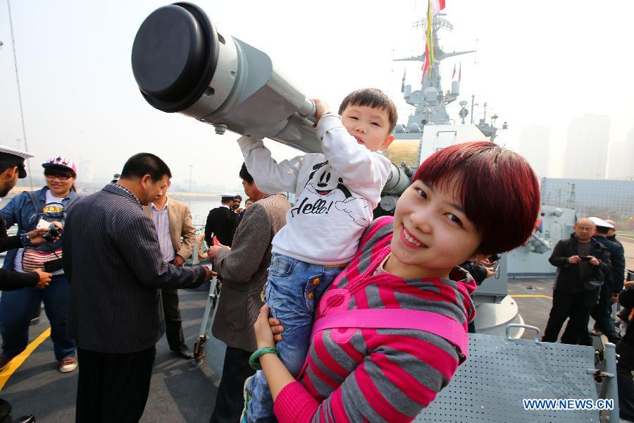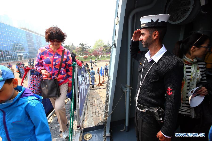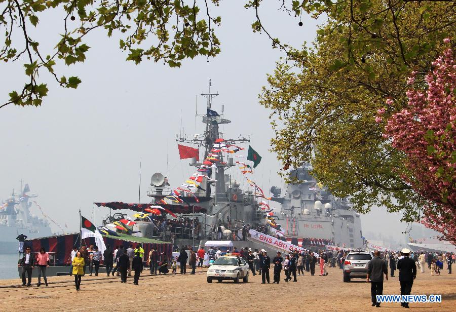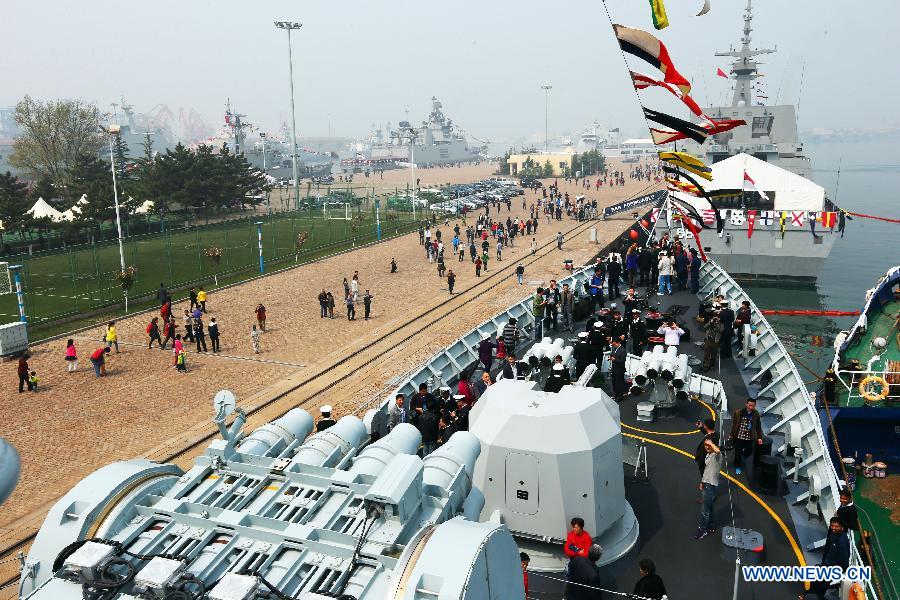 People visit the Pakistan missile frigate at the Dagang Port in Qingdao, east China's Shandong Province, April 22, 2014. Chinese and foreign naval ships taking part in a multi-national marine exercise here were open to the public. The exercise will be held around April 23, which marks the 65th anniversary of the founding of the Chinese People's Liberation Army (PLA) Navy. (Xinhua/Zha Chunming)
