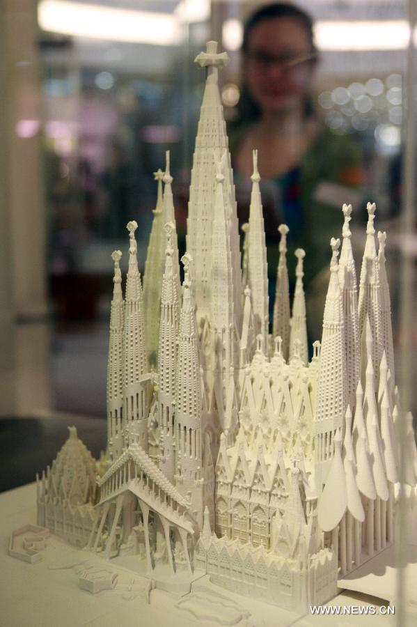 A model of the lizard designed by Spanish architect Antonio Gaudi is exhibited at Times Square, Hong Kong, south China, April 29, 2014. The Gaudi Architecture Exhibition held its opening ceremony here on Tuesday, which will last till June 1. (Xinhua/Jin Yi)
