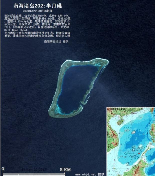 Contact with 11 fishermen has been lost after they were intercepted by armed men in the South China Sea on Tuesday morning, local authorities said Wednesday. They were on board fishing boat Qiongqionghai 09063, which was intercepted by an unidentified armed vessel at about 10:00 am in waters off the Half Moon Shoal of Nansha Islands, according to the Tanmen fishing association in Qionghai City, Hainan Province. File Photo shows Half Moon Shoal. [Photo/Xinhua]