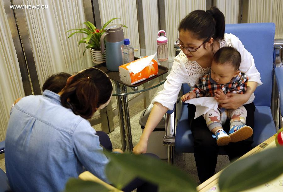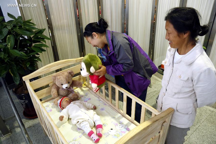 A mother plays with her child at a new breastfeeding room set up in Jinan railway station in Jinan, capital of east China's Shandong Province, May 11, 2014. UNICEF and the National Center for Women and Children's Health under the Chinese Center for Disease Prevention and Control, jointly launched a "10 square meters of Love" campaign, calling for the establishment of breastfeeding rooms in public buildings and workplaces throughout the country. (Xinhua/Tang Lei)