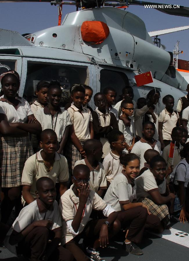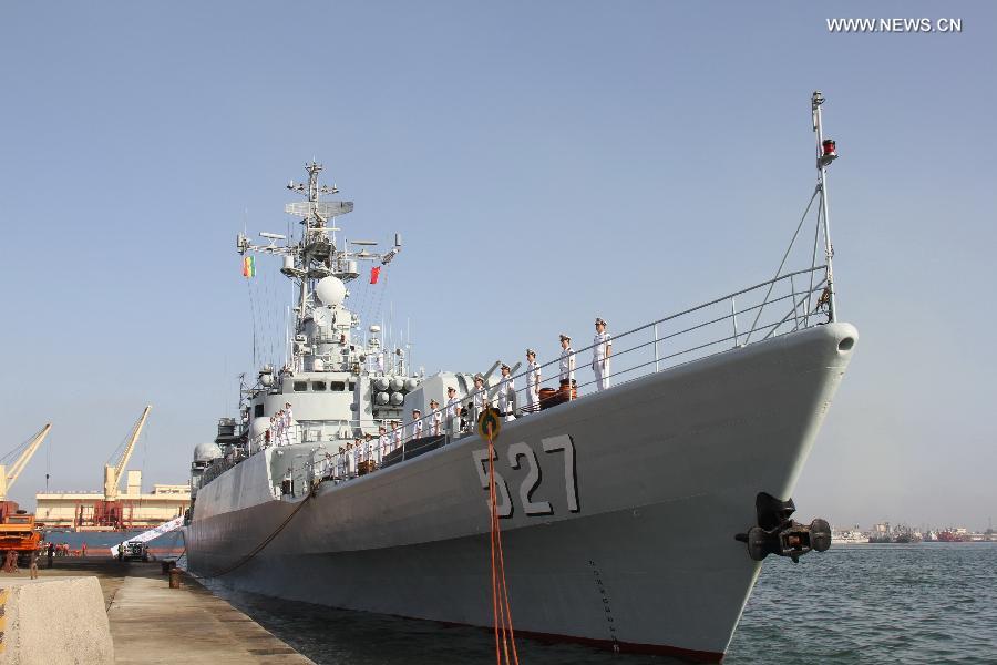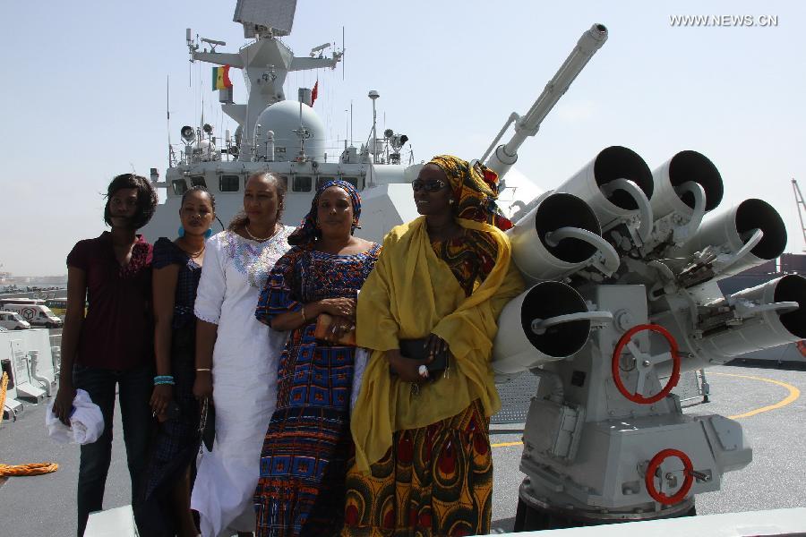 A visiting Chinese fleet of the 16th naval escort squad sent by the Chinese People's Liberation Army (PLA) Navy arrives in Dakar, capital of Senegal, May 14, 2014. The 16th PLA naval escort squad started a 3-day visit here on Wednesday. (Xinhua/Tai Jianqiu)