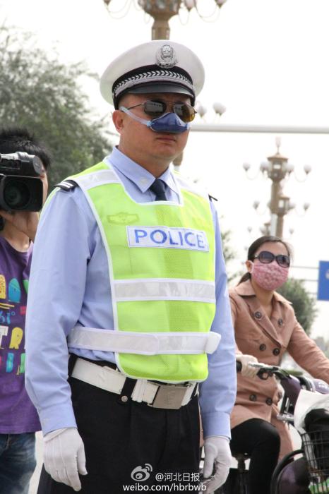 Hebei traffic police equipped with anti-smog nasal air filter (1/3)