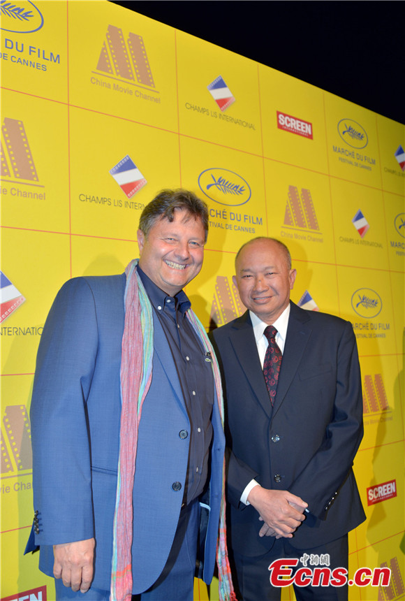Hong Kong director John Woo (C) attends the "China Night" of the 67th Cannes Film Festival at Cannes in France on May 15, 2014. This year is the 6th time for China Night to shine in Cannes. [Photo: China News Service / Long Jianwu]