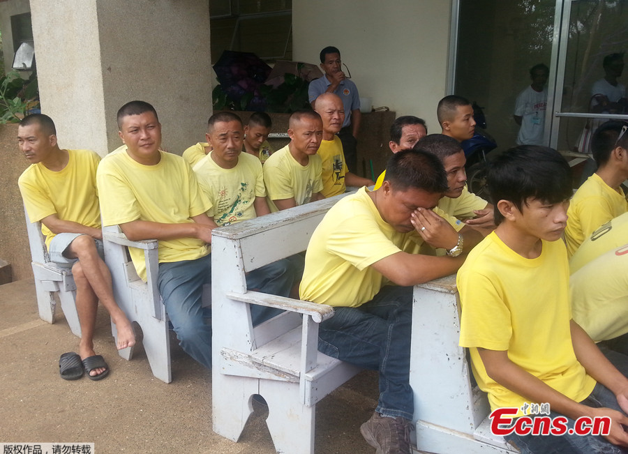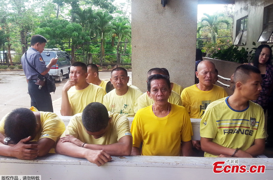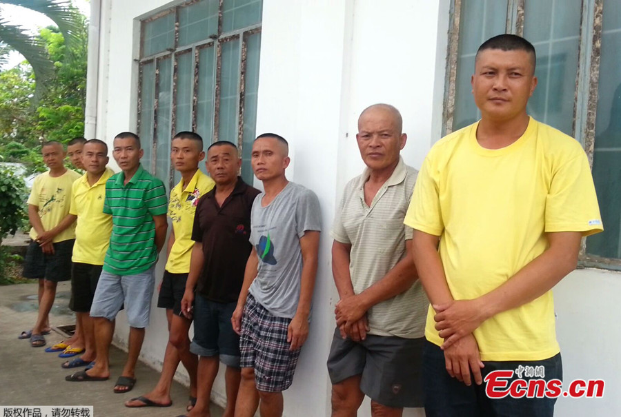 Photo taken on May 14 shows Chinese fishermen detained by Philippine police at a house of detention in Puerto Princesa, Palawan province. Some of the fishermen had their hair cut. The Chinese fishermen aboard fishing boat Qiongqionghai 09063 were seized by the Philippine police while fishing in waters off China's Half Moon Shoal on May 6.