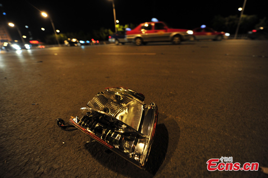 One person is killed and three injured, including China's famous storytelling artist Tian Lianyuan, in a traffic accident at around 8:40 p.m. on May 28, 2014, in Shenyang of northeast China's Liaoning province. According to the local traffic authorities, the killed driver is Tian's son. [Photo: China News Service / Yu Haiyang]