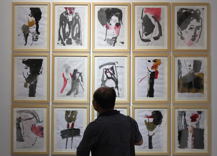Visitors enjoy artwork at the first "Russian Art Week" in Nantong, Jiangsu province, May 28, 2014. 2014 is a cultural exchange year for Chinese and Russian youth. The art week will exhibit over 200 modern and contemporary oil paintings, woodcuts and photographs showcasing Russia's local customs, among which the earliest work can be traced back to 1924. The event will run through June 16 at 1895 Nantong Culture and Creative Industry Park. [Photo/Xinhua]