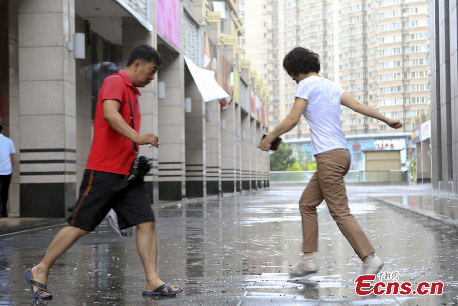 People run in the rain in Beijing on June 6, 2014. The city's meteorological observatory on Friday issued the first blue alert for rainstorms during this year's flood season. (Photo: China News Service/Li Huisi)