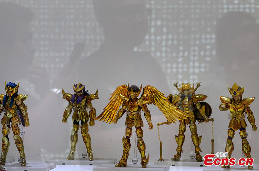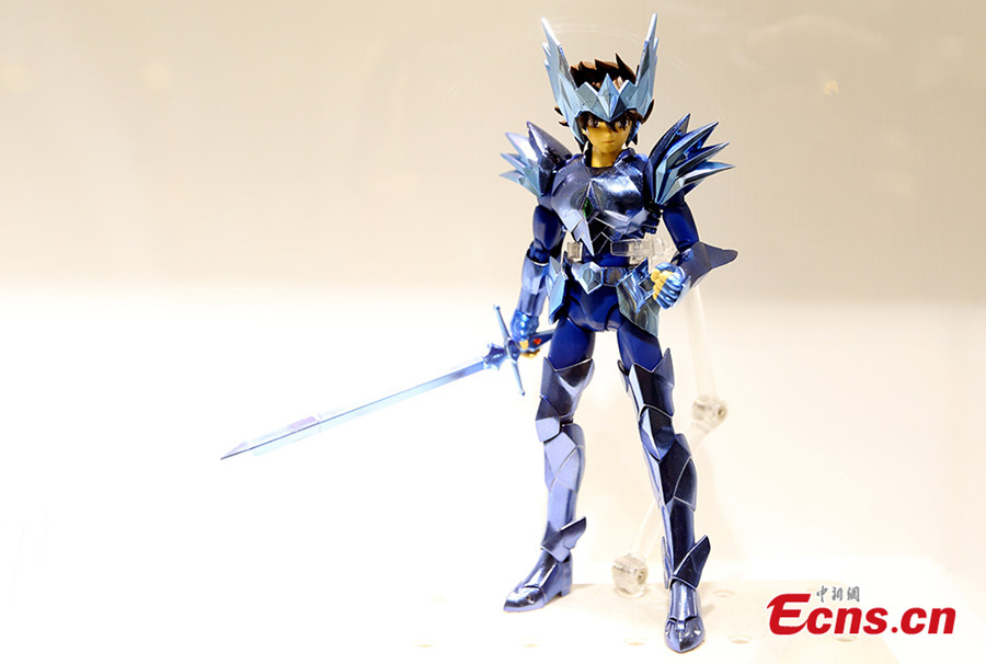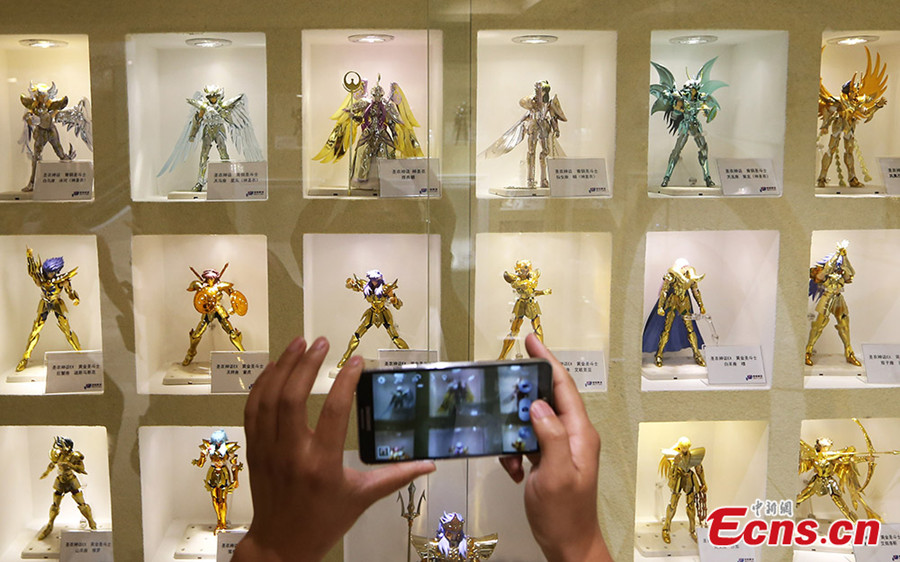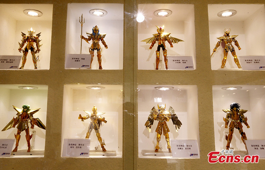Photo taken on June 8, 2014 shows an exhibition featuring Japanese manga series Saint Seiya at Deji Plaza in Nanjing of east China's Jiangsu province. Saint Seiya, written and illustrated by Masami Kurumada, becomes popular among China's post-70s and 80s generations after entering China in the 1990s. [Photo/Yang Bo]