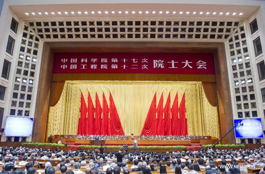 Delegates attend the opening ceremony of the 17th Congress of the Chinese Academy of Sciences (CAS) and the 12th Congress of the Chinese Academy of Engineering (CAE) in Beijing, capital of China, June 9, 2014. (Xinhua/Pang Xinglei)