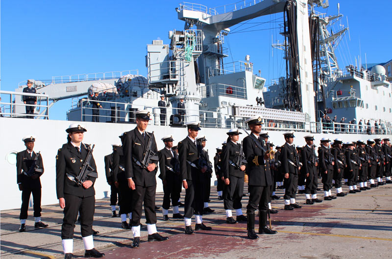A Chinese navy fleet consisting of two missile frigates and a supply ship docked at Cape Town on Tuesday. Local visitors are allowed to board missile frigates Yancheng and Luoyang during the four-day visit.