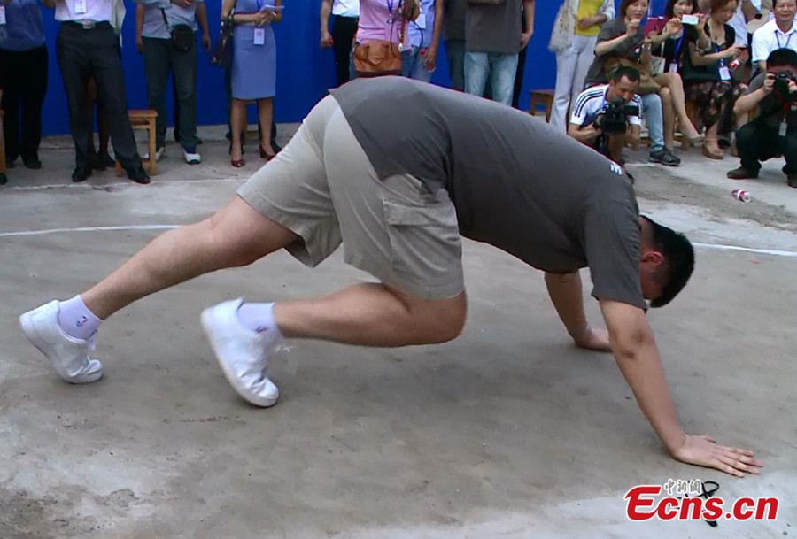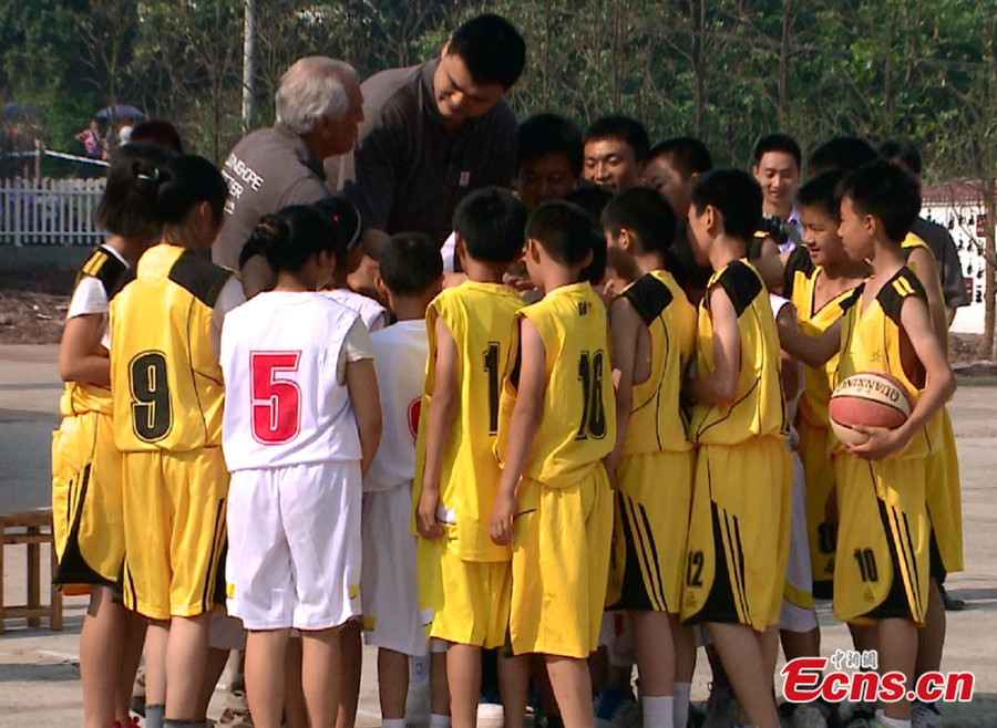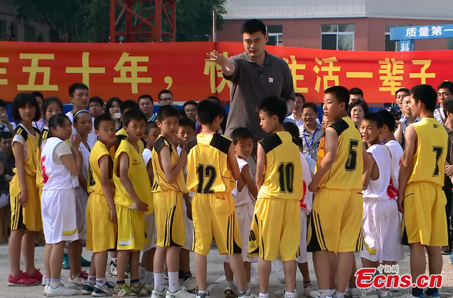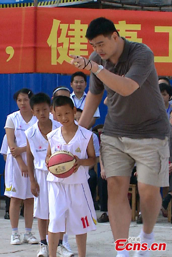 Chinese basketball star Yao Ming is seen when participating in a charity event at Luzhou city in southwest China's Sichuan province on June 18, 2014. [Photo: China News Service / Zhou Yaqiang]