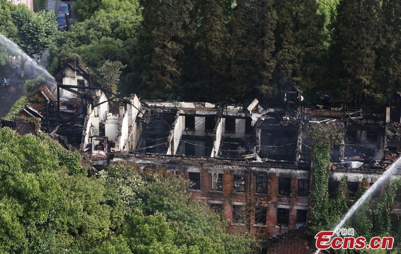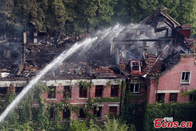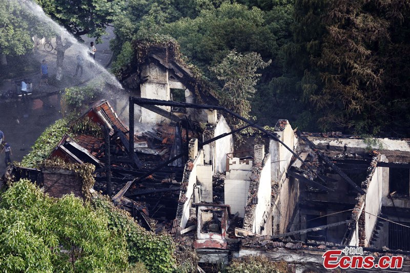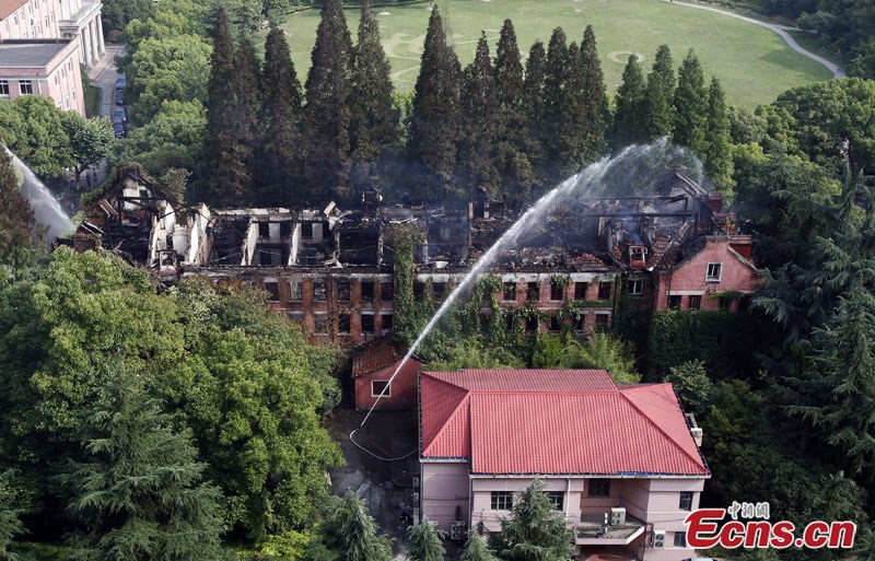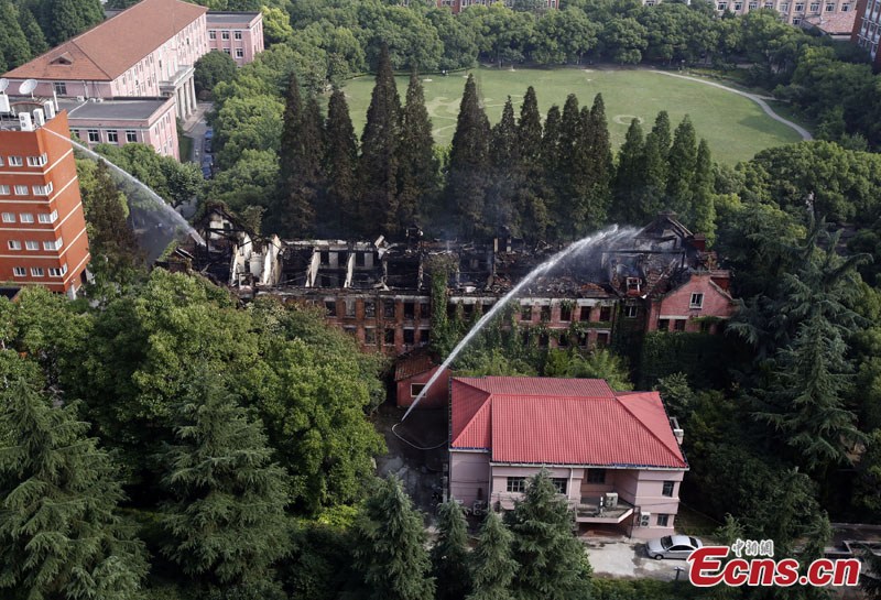 A fire in Shanghai University's Yanchang Campus has been extinguished Thursday morning, June 19, 2014. The building where the blaze erupted had been in a state of disrepair for long and there were no casualties. (Photo/Tang Yanjun)