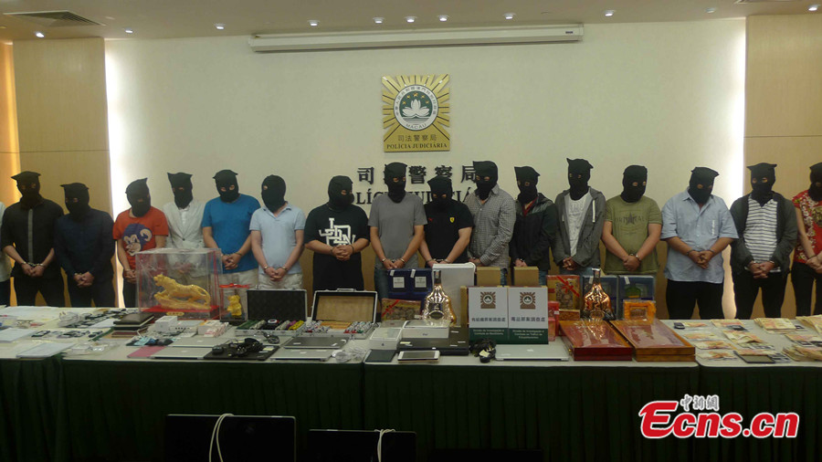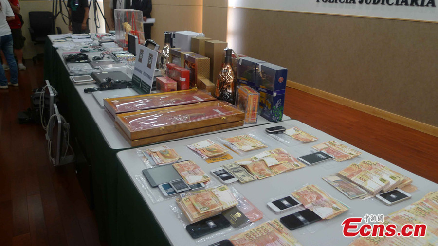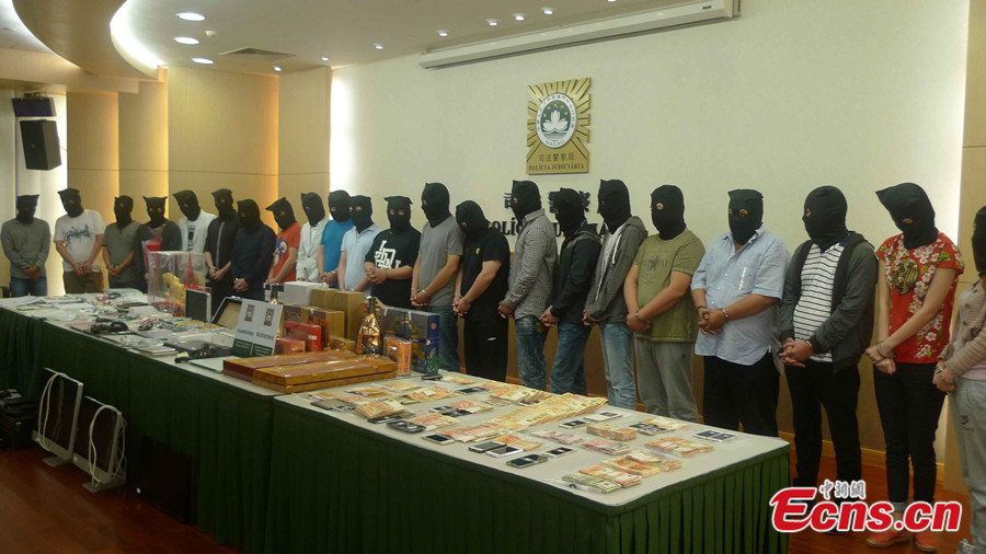 Macao police bust an illegal gambling on World Cup football, with betting amount reaching 5 billion HK dollars, on the morning of June 19, 2014, according to the Judiciary Police of Macao Special Administrative Region on Friday, June 20. A total of 22 persons, including 9 Malaysians, 9 Chinese mainlanders and 4 Hong Kong residents, were arrested in the gambling case, biggest of its kind in the region. On the morning of Friday, another football gambling case was busted with five million HK dollars and four Chinese mainlanders seized. [Photo: China News Service / Wang Guo'an]