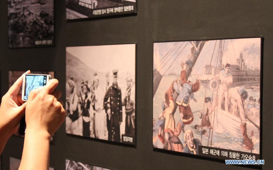 A visitor takes a photo during an exhibition in Seoul, South Korea, on June 21, 2014. The exhibition about the Sino-Japanese War of 1894-1895 and the Russo-Japanese War of 1904-1905 will last until November 10. (Xinhua/Yao Qilin)