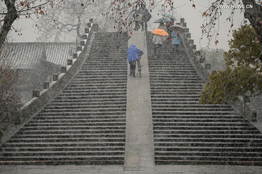 Photo taken on June 21, 2014 shows a general view of Gongchen Bridge on China's Grand Canal, in Hangzhou, east China's Zhejiang province. China's Grand Canal, the longest artificial waterway in the world, was inscribed on the World Heritage list on June 22, 2014. The Grand Canal with a history of more than 2,400 years was recognized by UNESCO World Heritage Committee which convened its 38th session in the Qatari capital. The 1,794-km canal runs from Beijing to Hangzhou in China's eastern Zhejiang province. (Xinhua/Li Zhong)
