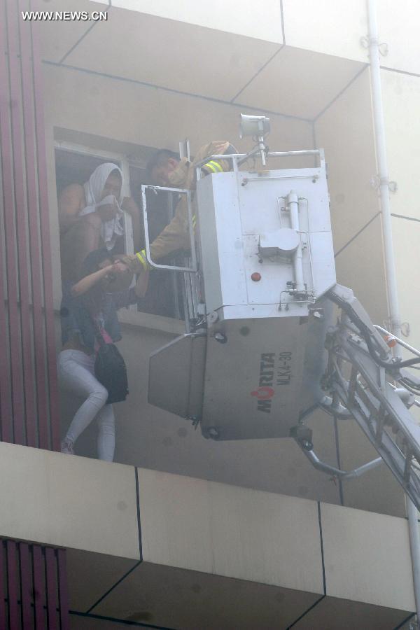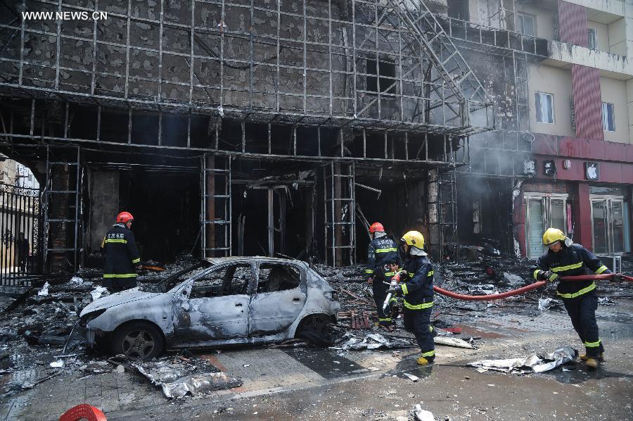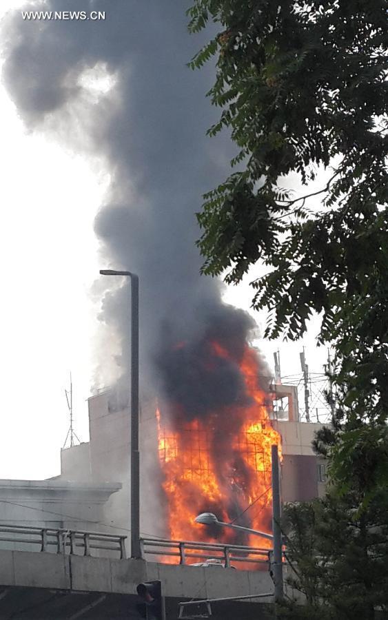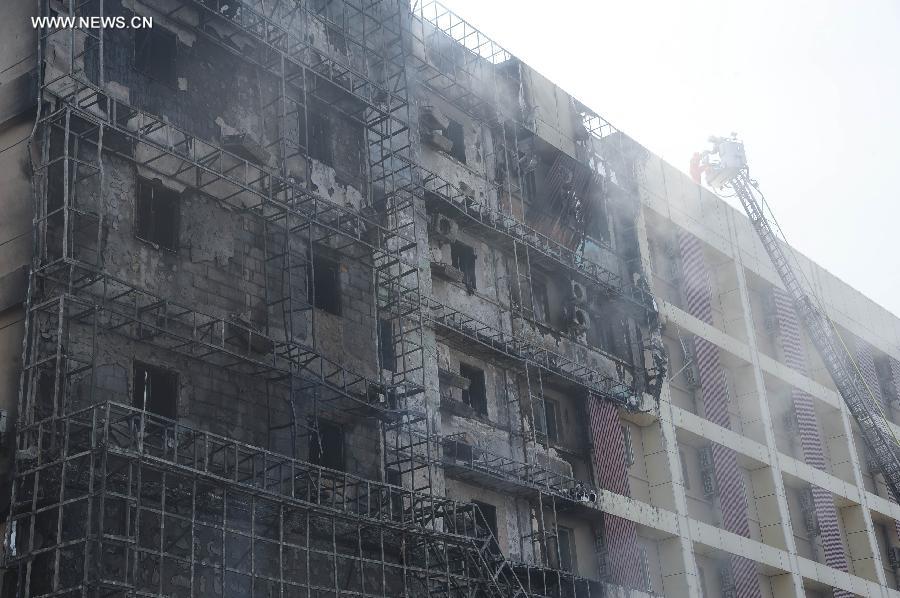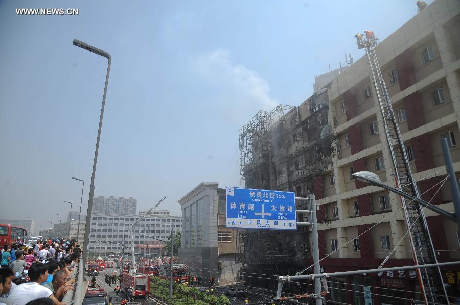Firefighters try to extinguish fire in a hotel in Taiyuan, capital of north China's Shanxi Province, June 22, 2014. The fire occured on June 22 morning and firefighters have extinguished the fire. No casualties were reported. (Xinhua)