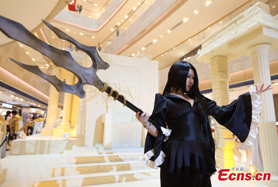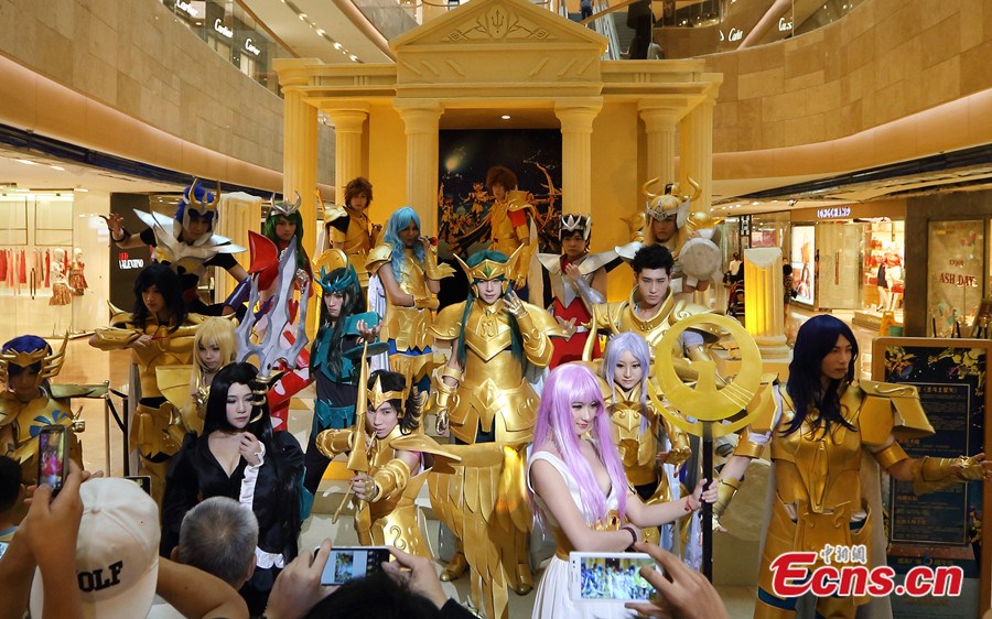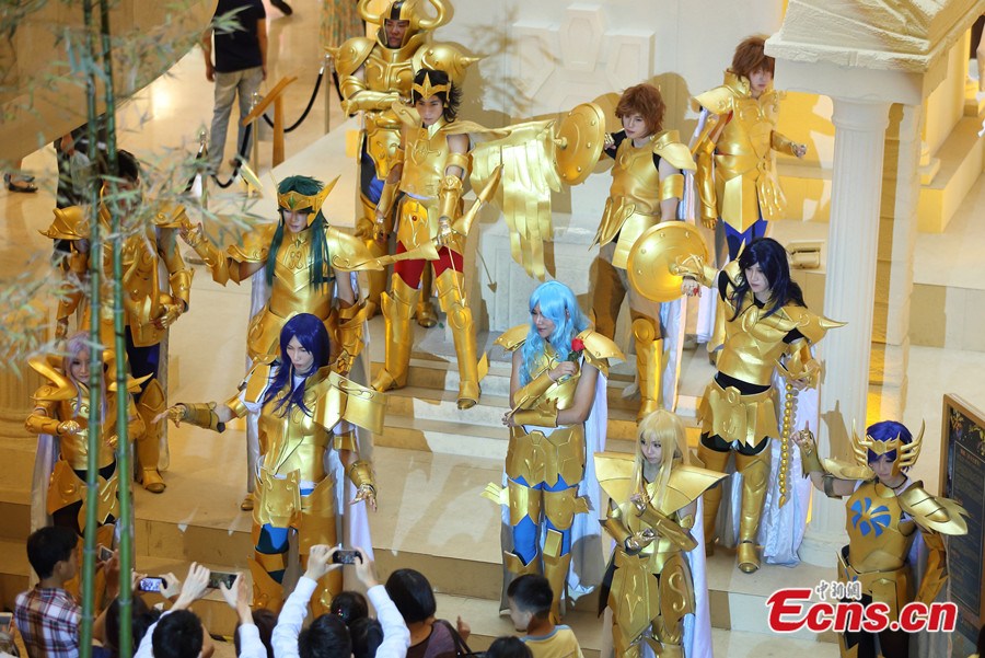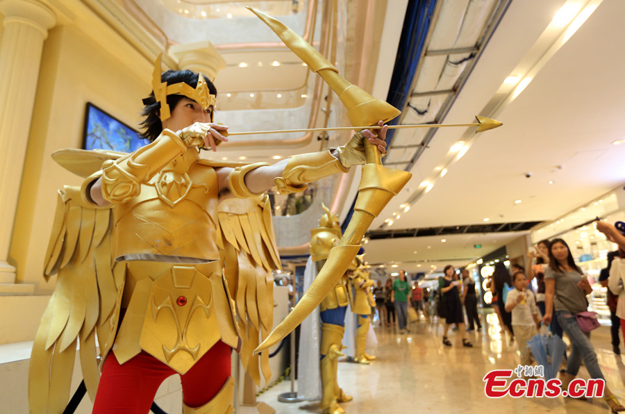A cosplay show, featuring cartoon characters of Japanese manga series "Saint Seiya: Knights of the Zodiac", is staged at Deji Plaza in Nanjing of east China's Jiangsu province on June 26, 2014. [Photo: China News Service / Yang Bo]