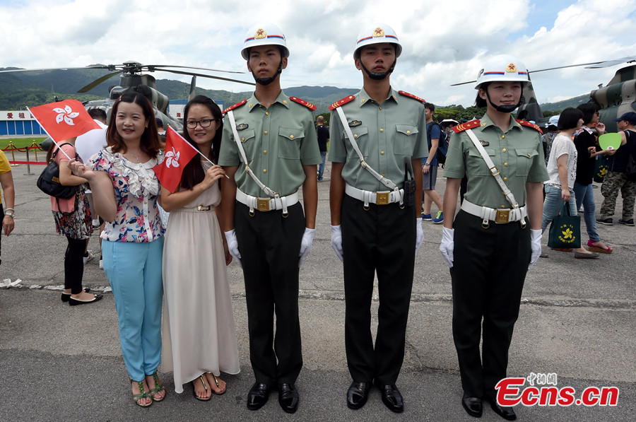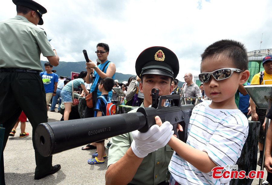 The Hong Kong Garrison of the Chinese People's Liberation Army (PLA) opens its Shek Kong and San Wai barracks to the public on June 29, 2014, two days before the 17th anniversary of the Hong Kong's reunification with China. [Photo: China News Service / Zhang Yu]