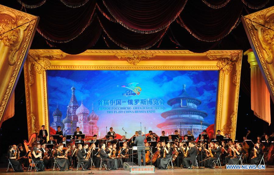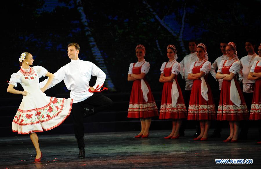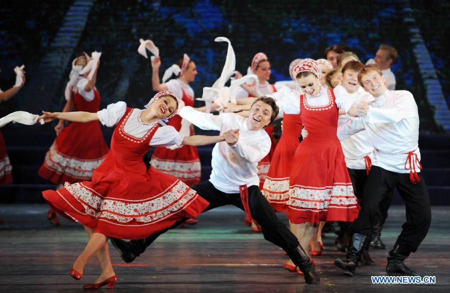 Dancers from Russia perform during the opening ceremony of the first China-Russia Expo in Harbin, capital of northeast China's Heilongjiang Province, June 29, 2014. The Expo's predecessor was China Harbin International Economic and Trade Fair initiated in 1990. It was upgraded to an exposition earlier this year to focus on bilateral cooperation. (Xinhua/Wang Jianwei)
