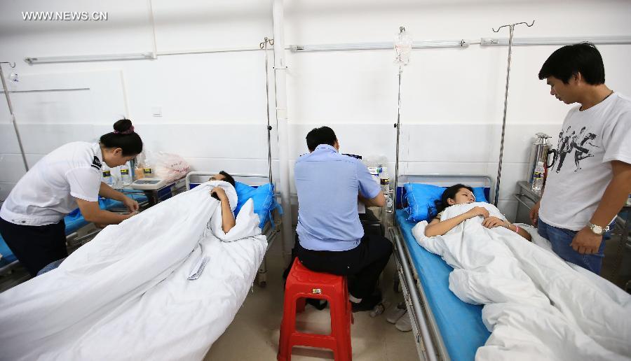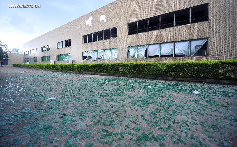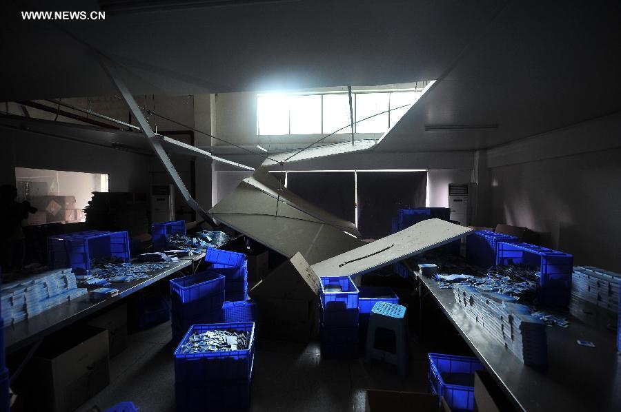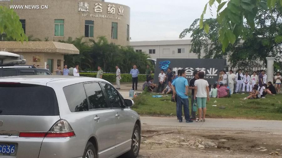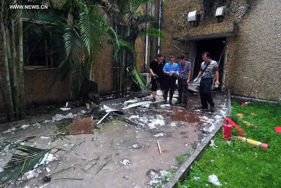 Photo taken on July 1, 2014 shows the site where a blast occurred in Hainan Huigu Pharmaceutical Co., Ltd., Haikou, capital of south China's island province Hainan. Four people died and another four were injured in an explosion at the pharmaceutical factory in Haikou. An initial investigation found that the explosion was caused by alcohol-containing materials stored at the factory, local authorities said. A further investigation is ongoing. (Xinhua/Guo Cheng)