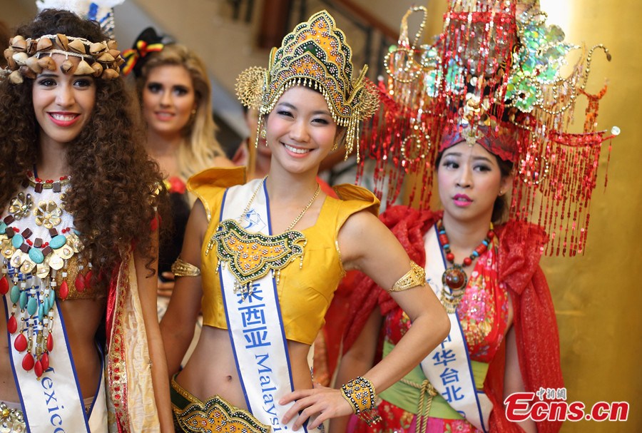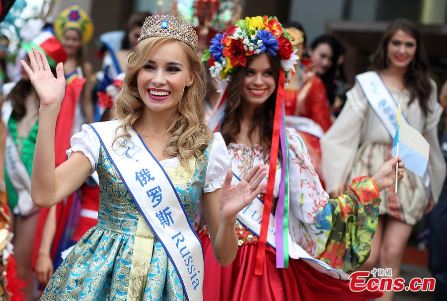 Image ambassadors of ecotourism from countries across the world join a cultural activity held in Nanjing, Jiangsu province on July 2, 2014. The event has attracted participants from 42 countries including France, Australia, Panama, and Canada. Those ambassadors will join promotion events to raise public’s green awareness during their stay in Nanjing. [Photo: China News Service/ Yang Bo]