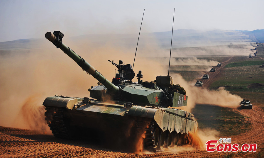 Tanks are seen during the "Stride 2014 Zhurihe D" confrontation exercise at the Zhurihe Training Base under the Beijing Military Area Command (MAC) of the Chinese People's Liberation Army (PLA) on July 1, 2014. The two sides of the exercise focus on reconnaissance and counter-reconnaissance on Tuesday's drill. The "Stride 2014 Zhurihe D" confrontation exercise kicked off on June 30, 2014. [Photo: China News Service / Yang Zaixin]