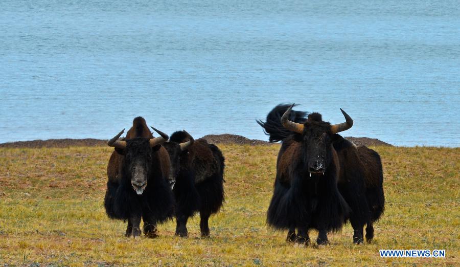 Photo taken on June 27, 2014 shows a wild yak at Chang Tang Nature Reserve, southwest China's Tibet Autonomous Region. Thanks to preservation measures, the number of wild yaks at the Chang Tang Nature Reserve has climbed to more than 60,000, a sharp contrast with 6,000-odd as compared to 20 years ago. (Xinhua/Purbu Zhaxi)