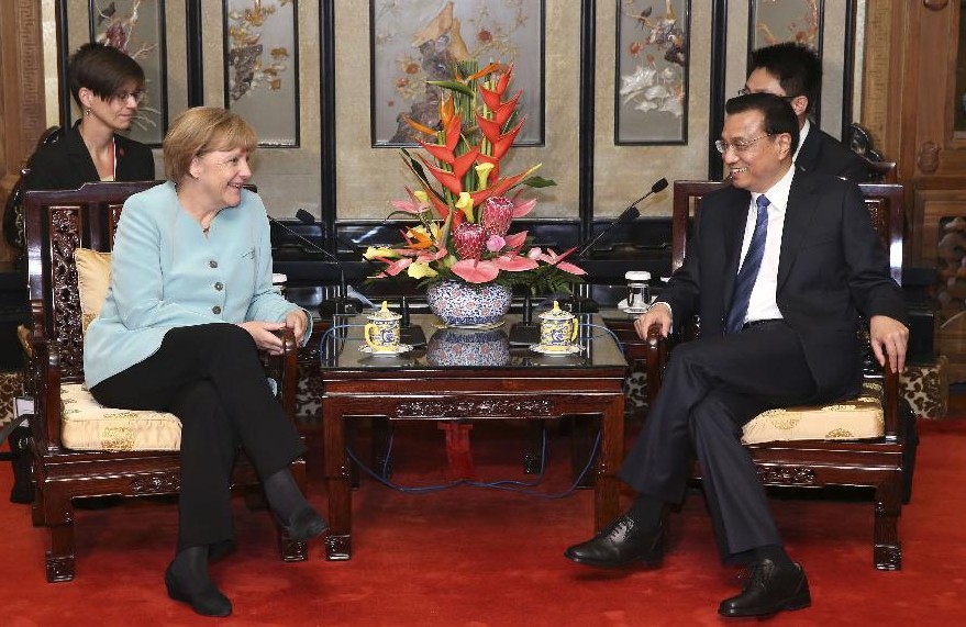 Chinese Premier Li Keqiang (R) meets with German Chancellor Angela Merkel in Beijing, capital of China, July 6, 2014. (Xinhua/Pang Xinglei)