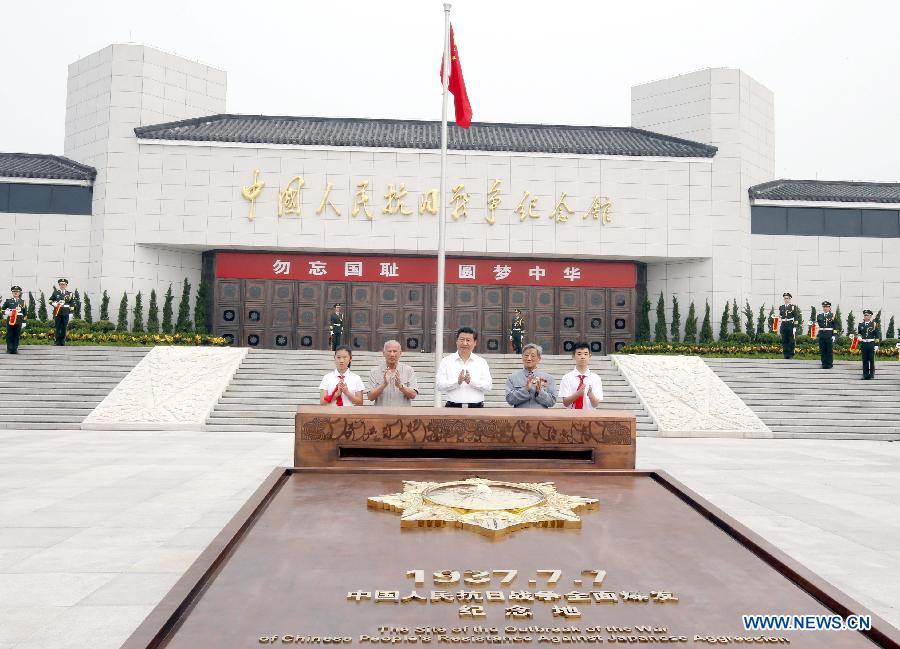 Chinese President Xi Jinping, who is also the general-secretary of the Communist Party of China Central Committee and chairman of the Central Military Commission, delivers a speech during a ceremony marking the 77th anniversary of the start of the Chinese people's war of resistance against Japanese invasion in Beijing, capital of China, July 7, 2014. (Xinhua/Ma Zhancheng)