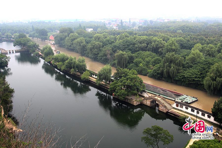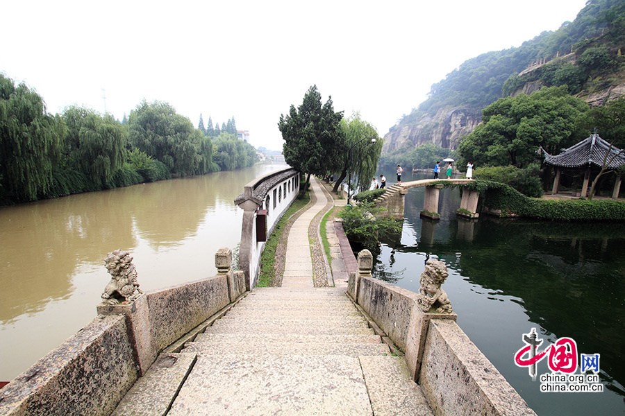Photo taken on July 7, 2014 in Shaoxing, Zhejiang shows a river divided by a wall boasts different water quality conditions. On the right side of the wall, visitors enjoy the beautiful scenery on a bridge over the clear water at the city’s Donghu Scenic Zone. However, on the other side of the wall, water of the river looks yellow due to heavy pollution. [Photo/ china.com.cn]