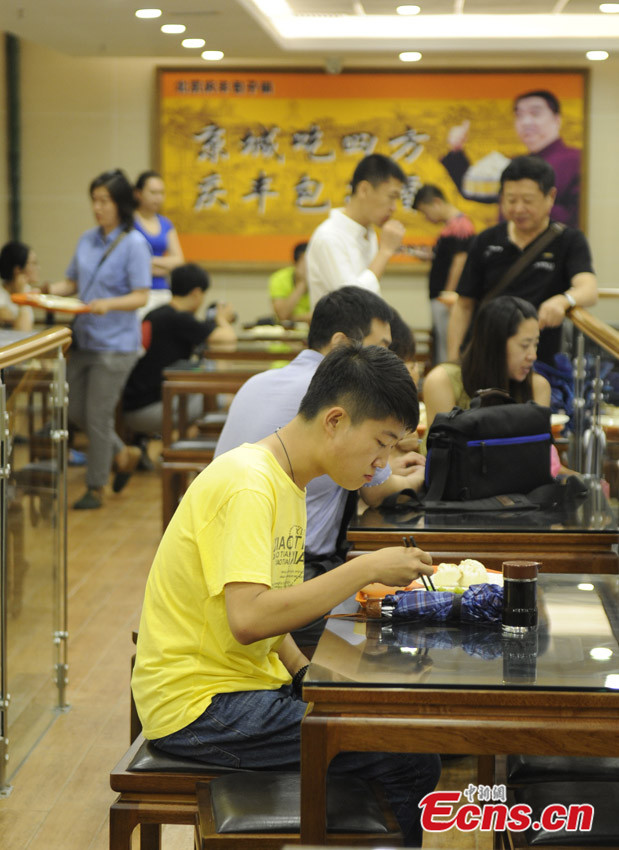 The first Qingfeng steamed bun restaurant in northeastern China opens in Changchun of Jilin province on July 8, 2014. Qingfeng steam bun chain restaurant witnessed a sharp increase of diners after President Xi Jinping's unexpected visit to one of its branches in Beijing on December 28, 2013. "President Xi Jinping combo" is in high demand after that. [Photo/Zhang Yao]