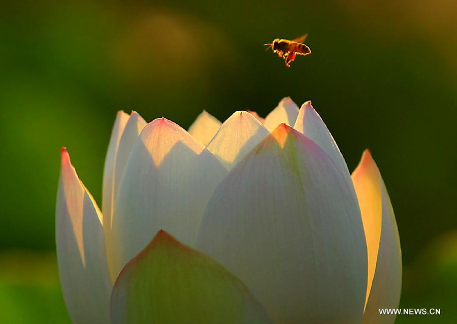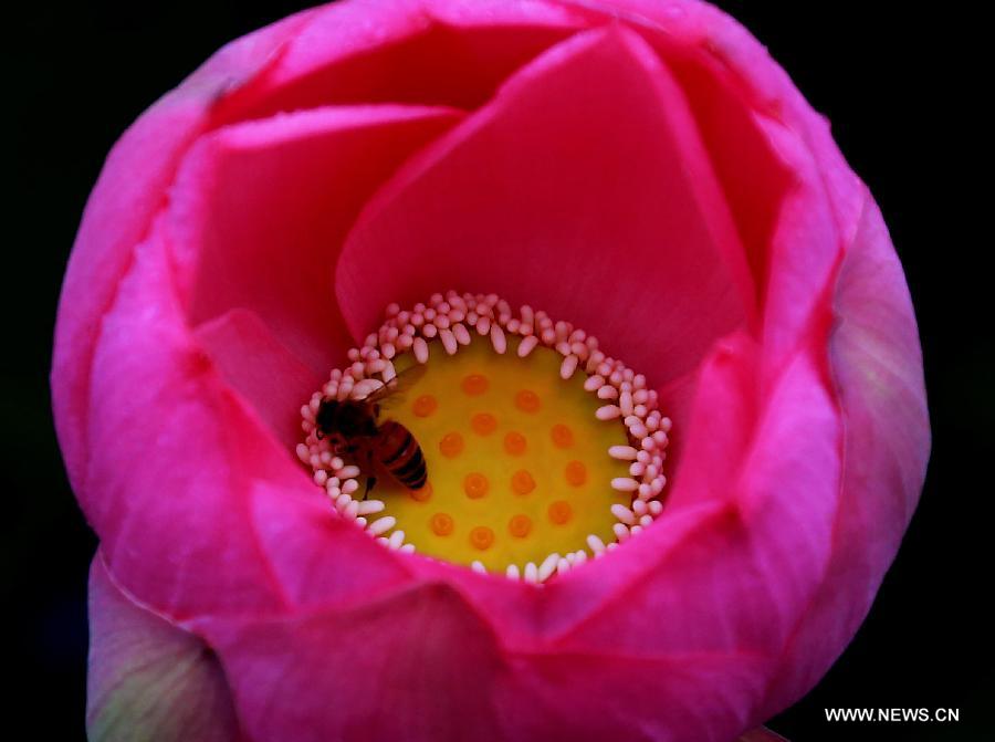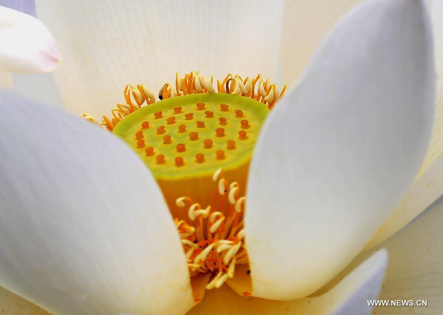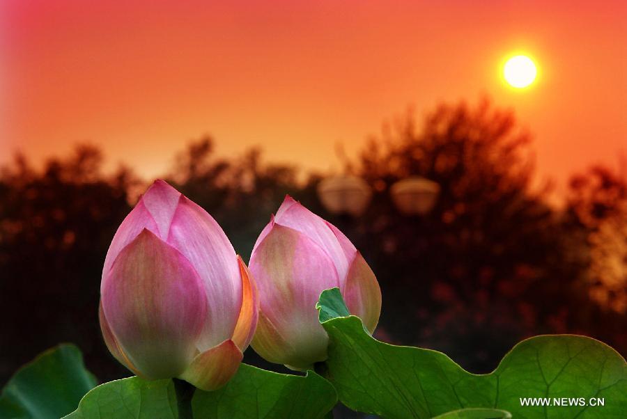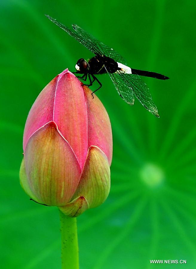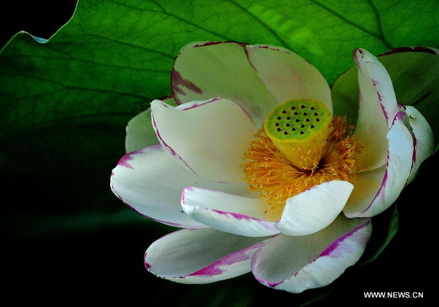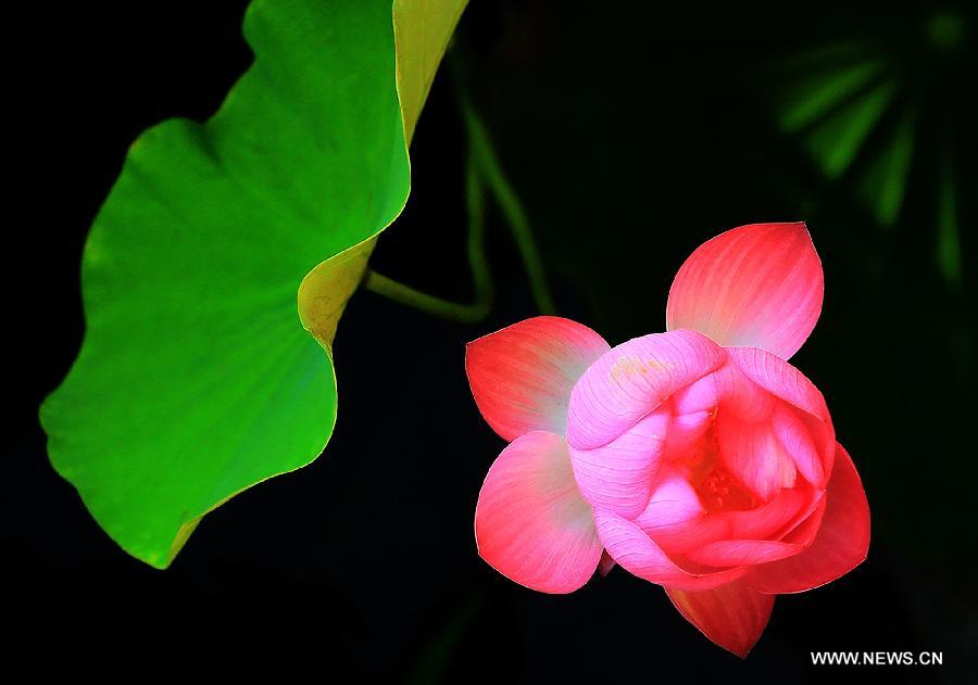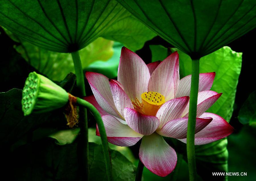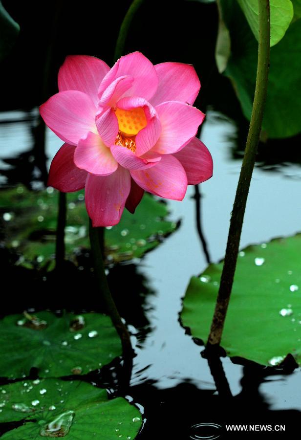 A lotus flower is in full bloom at the Lotus Park in Luoyang, central China's Henan Province, July 13, 2014. (Xinhua/Wang Song)