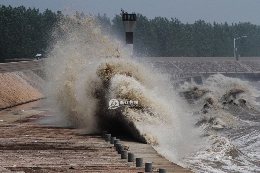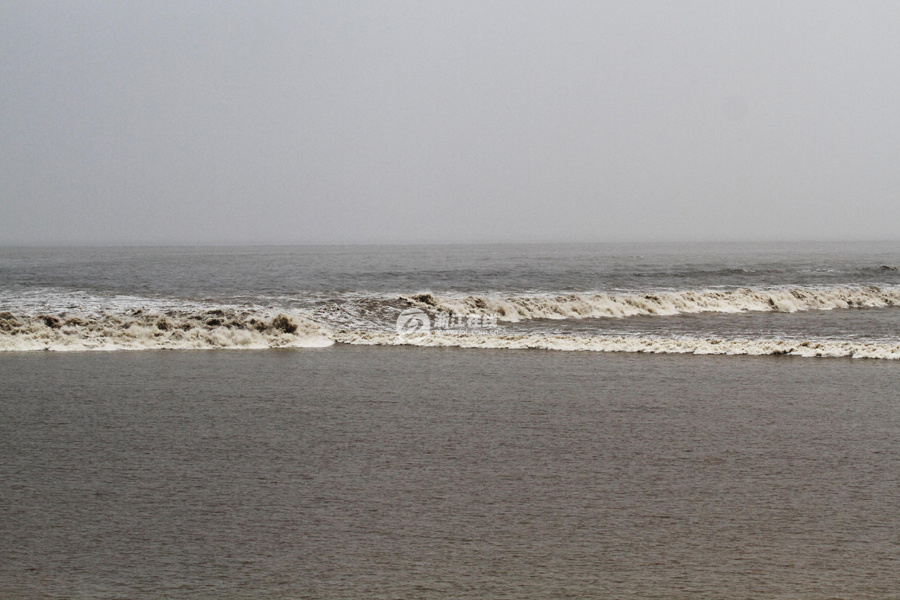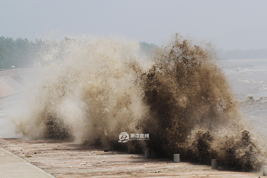 Powerful tidal waves are seen in the Qiantang River in Haining City, east China's Zhejiang province, on July 14. The tide waves reached nearly 10 meters high due to the influence of the "super moon". [Photo/zjol.com.cn]