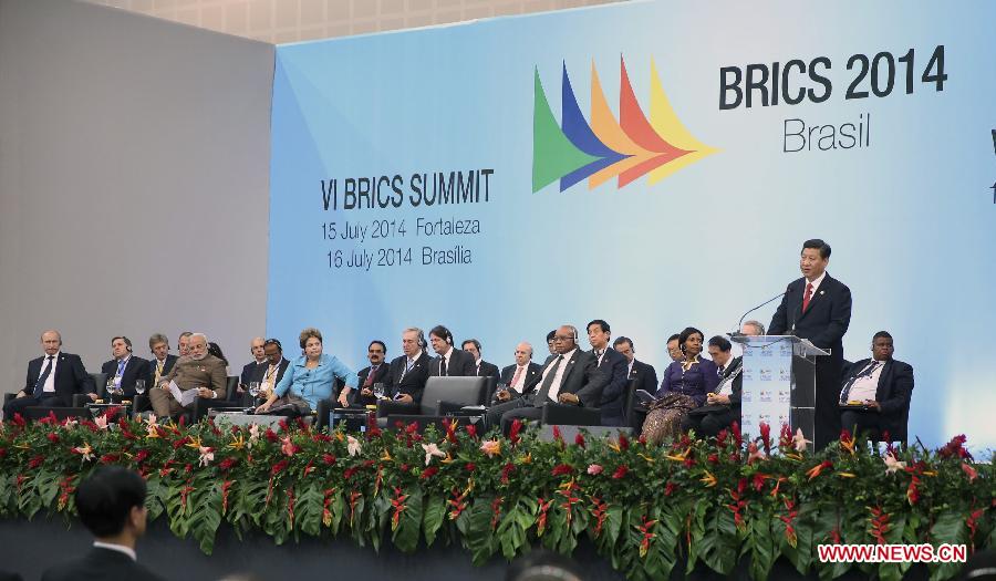 Chinese President Xi Jinping delivers a speech during the sixth BRICS summit in Fortaleza, Brazil, July 15, 2014. (Xinhua/Lan Hongguang)