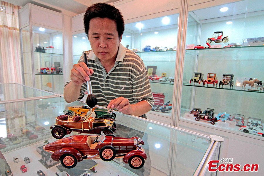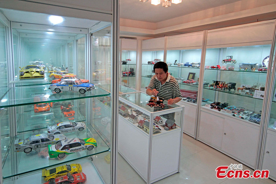 Yang Guofa, a citizen of Tianjin municipality shows his collection of model cars at his private museum in Tianjin on July 16, 2014. Yang has collected over 3,000 model cars and other products related to automobile culture in the past two decades. With all of the collection, Yang turns his home into a private museum, which represents the city’s first provincial private museum of model cars. [Photo: China News Service/ Tong Yu]
