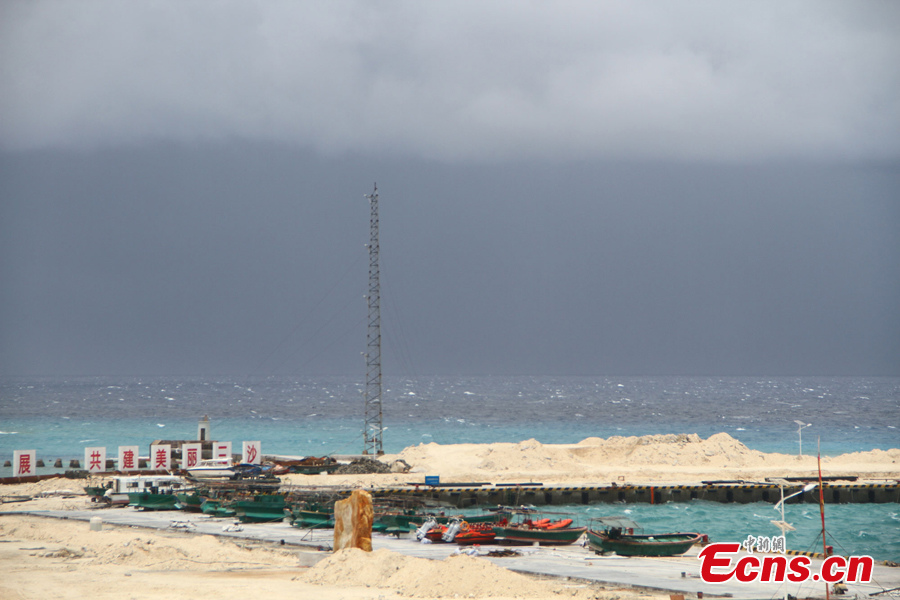 Dark clouds gather in the skies over Yongxing Island, one of the Xisha Islands in China, on Thursday, July 17, 2014. The city government of Sansha said the Xisha Islands have been prepared for Typhoon Rammasun. [Photo/China News Service]