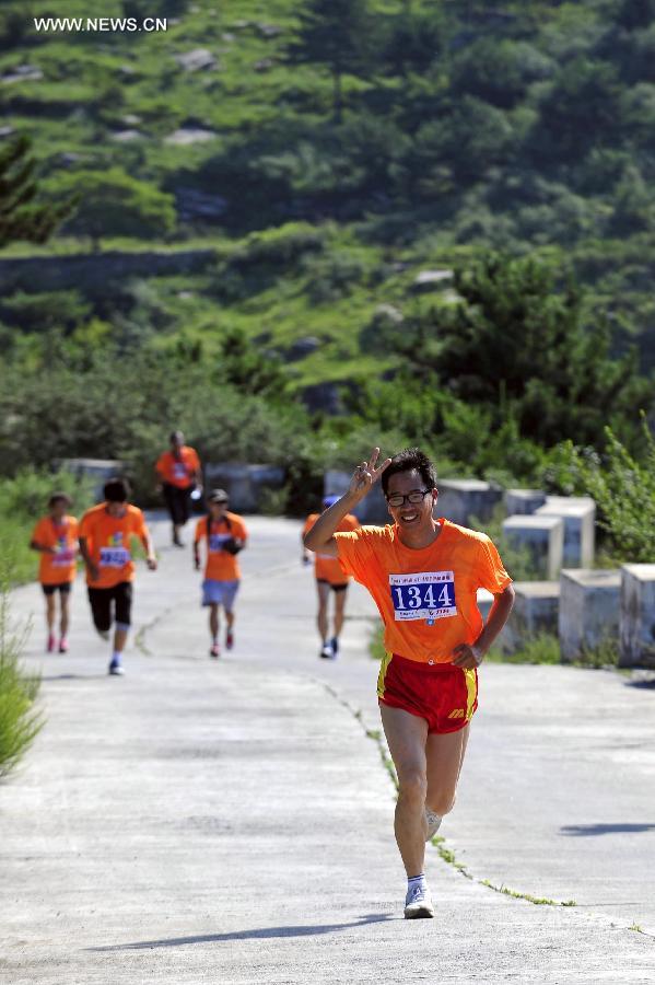 Runners jog on the mountain pass of Taihang Mountain, in Jincheng, north China's Shanxi Province, July 20, 2014. More than 1,000 runners gathered on the southern Taihang Mountain to participate in the jogging event. (Xinhua/Fan Minda)