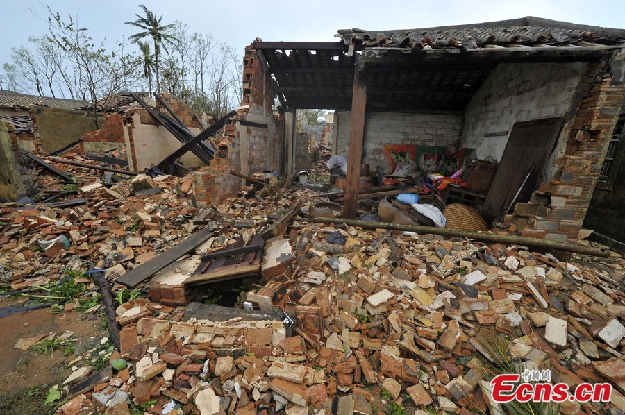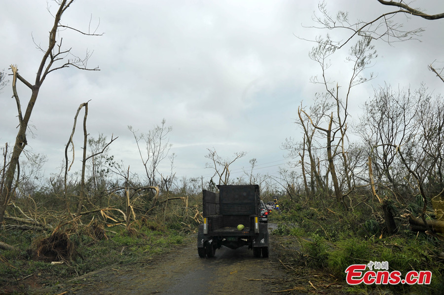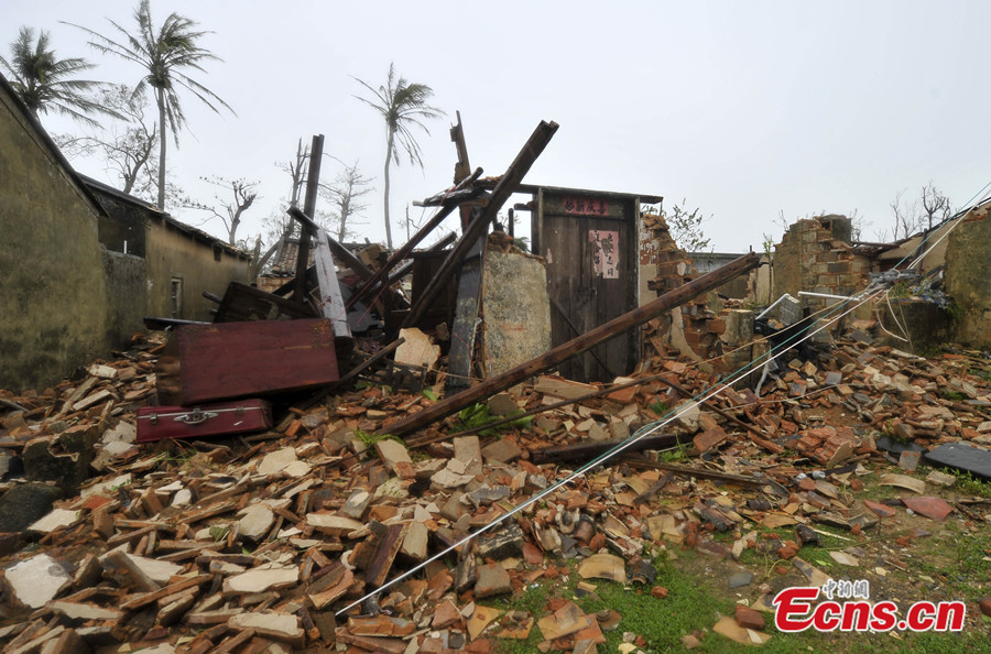 Photo taken on July 19, 2014 shows aftermath of super typhoon Rammasun at Wengtian town of Wenchang city in south China's Hainan province. Rammasun, the strongest typhoon to hit south China in four decades, brought gales and downpours. The death toll from super typhoon Rammasun has increased to 17 as of Sunday. [Photo: China News Service / Luo Yunfei]