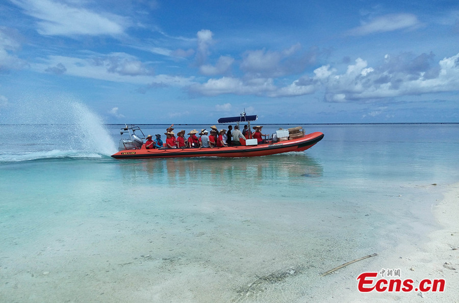 A shipping channel opens at Jinqing Island of Yongle Islands in Sansha city of south China's Hainan province on July 22, 2014. It marks that all inhabited islands in Xisha Islands, which consists of Xuande Islands and Yongle Islands, get access to shipping channels. [Photo: China News Service / Wang Xiaobin]