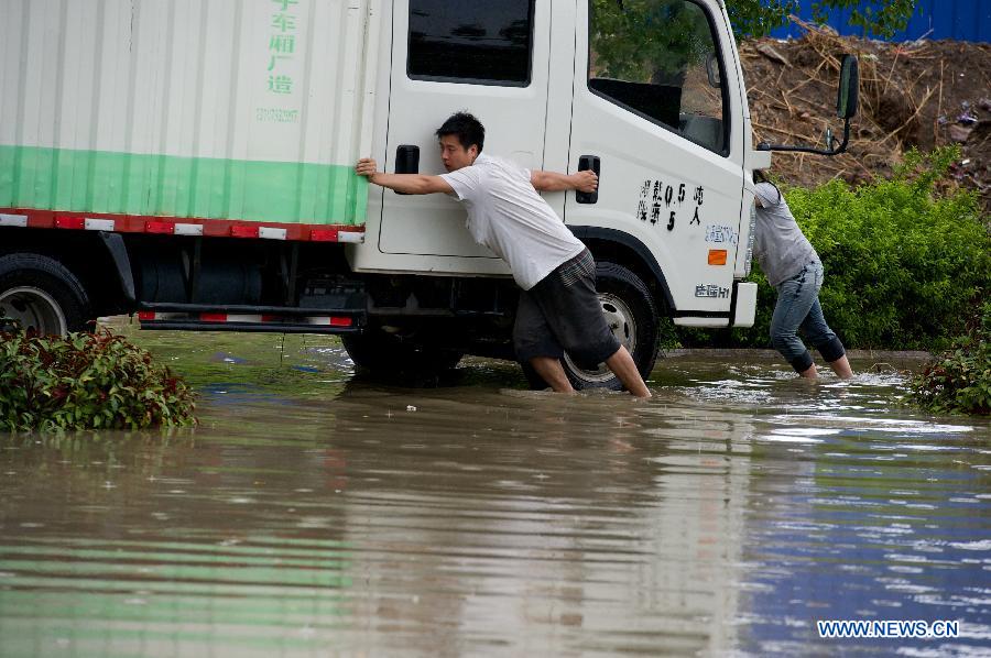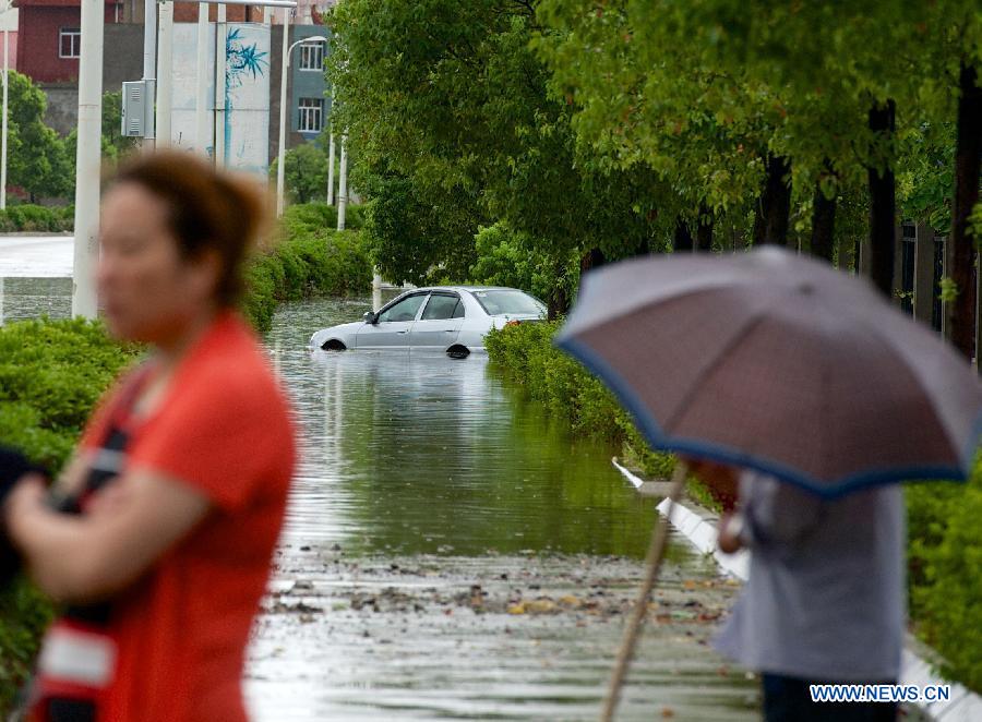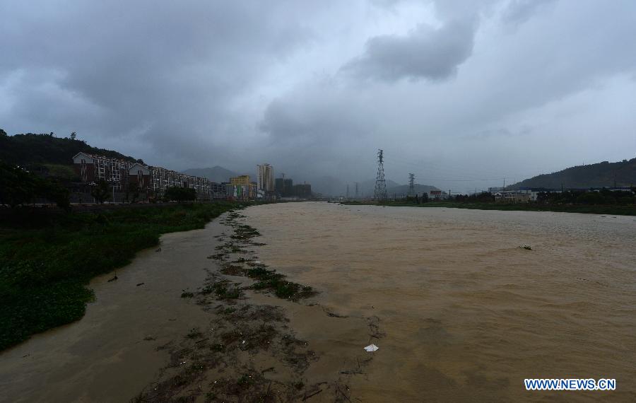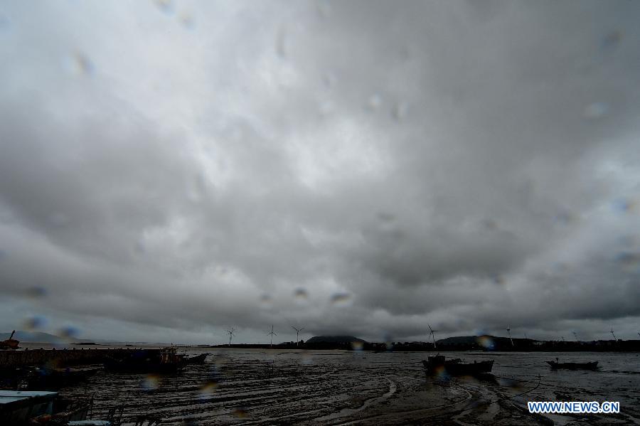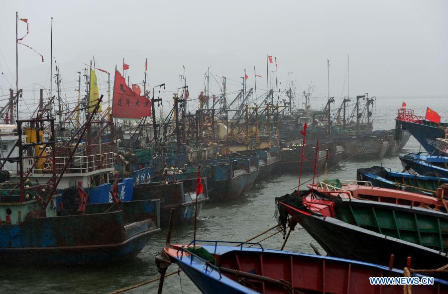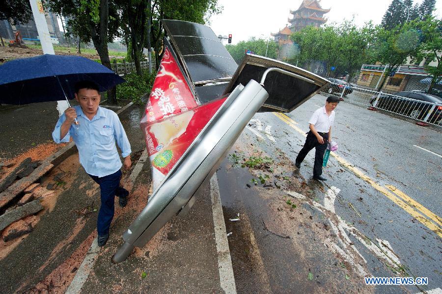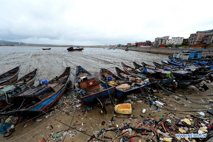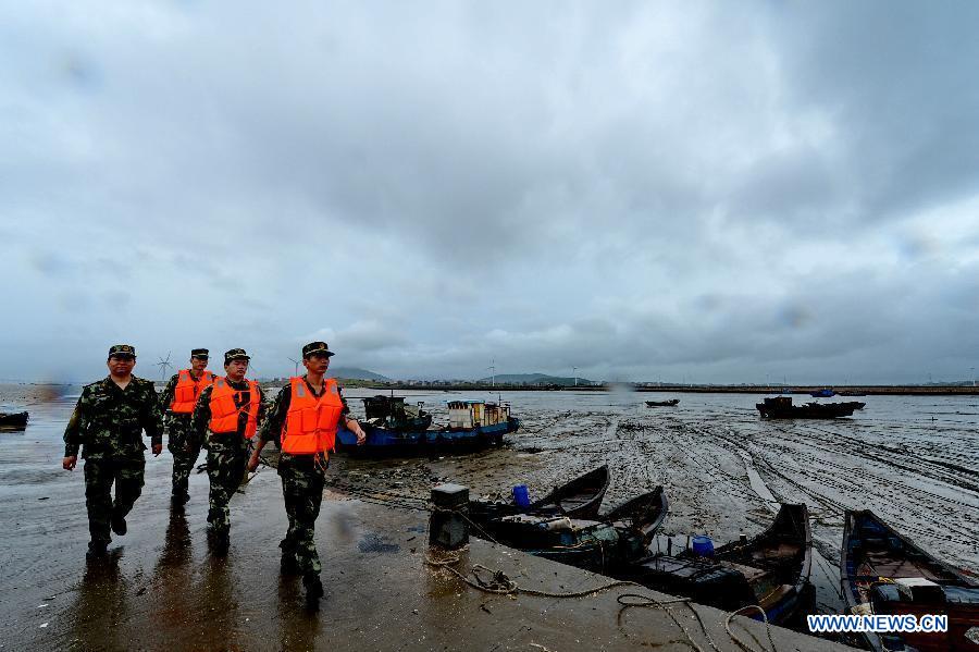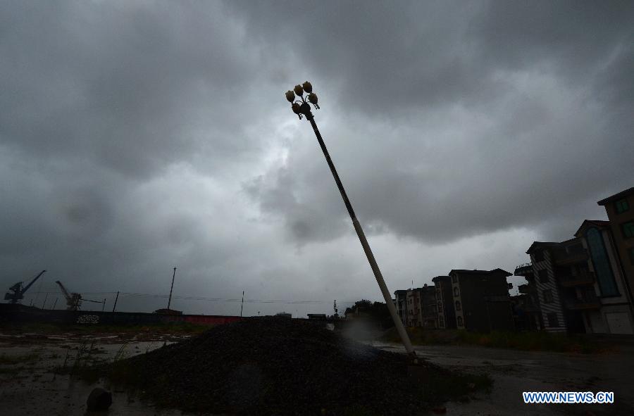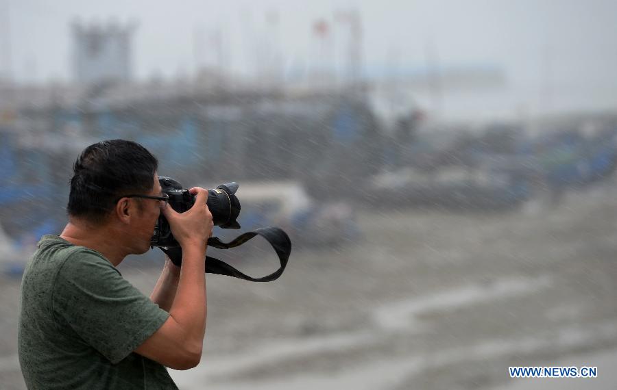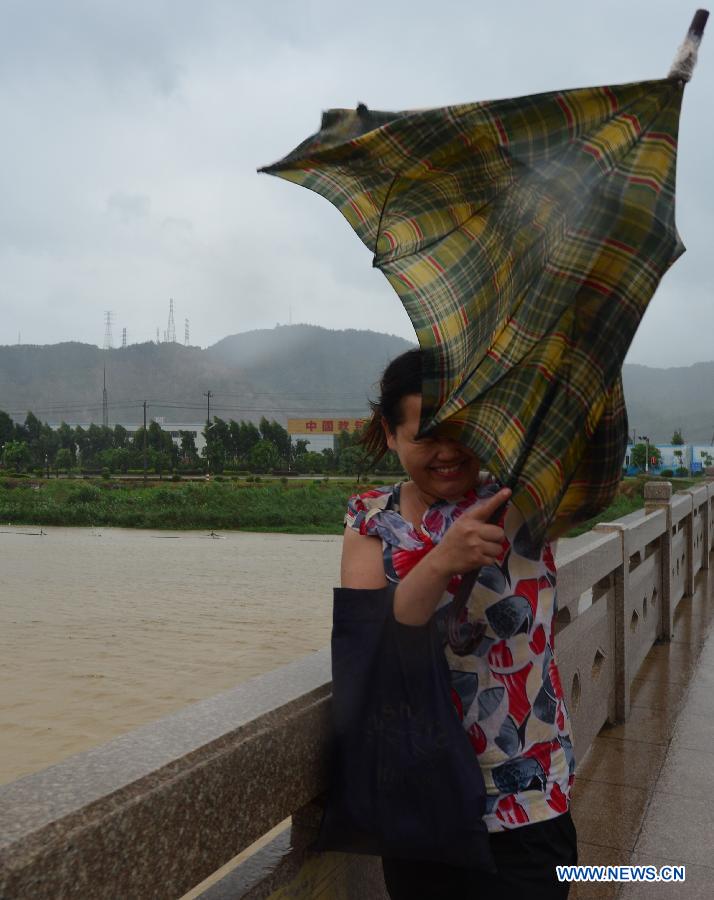 A woman walks on a bridge against strong wind brought by typhoon Matmo in Luoyuan County, southeast China's Fujian Province, July 23, 2014. Typhoon Matmo, the 10th typhoon to affect China in 2014, made its landfall Wednesday in Fujian Province with a wind speed of 33 to 35 meters per second. More than 30,000 fishing vessels and their crew members in the nearby coastal areas have been evacuated. (Xinhua/Wei Peiquan)