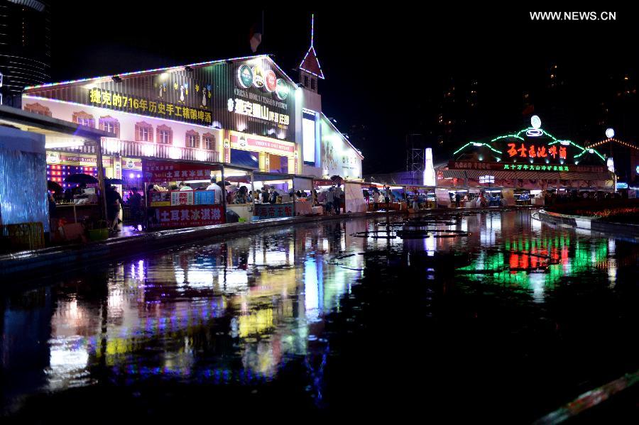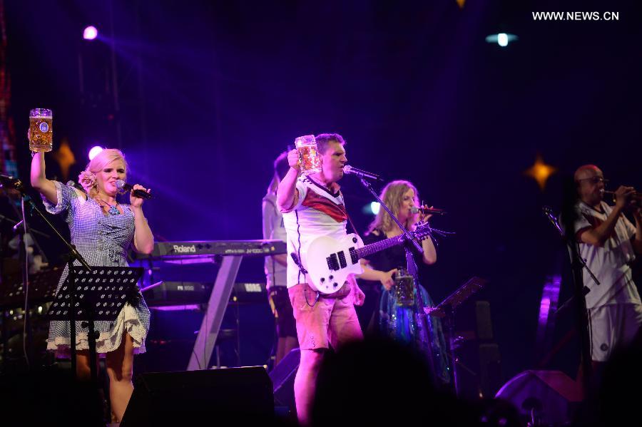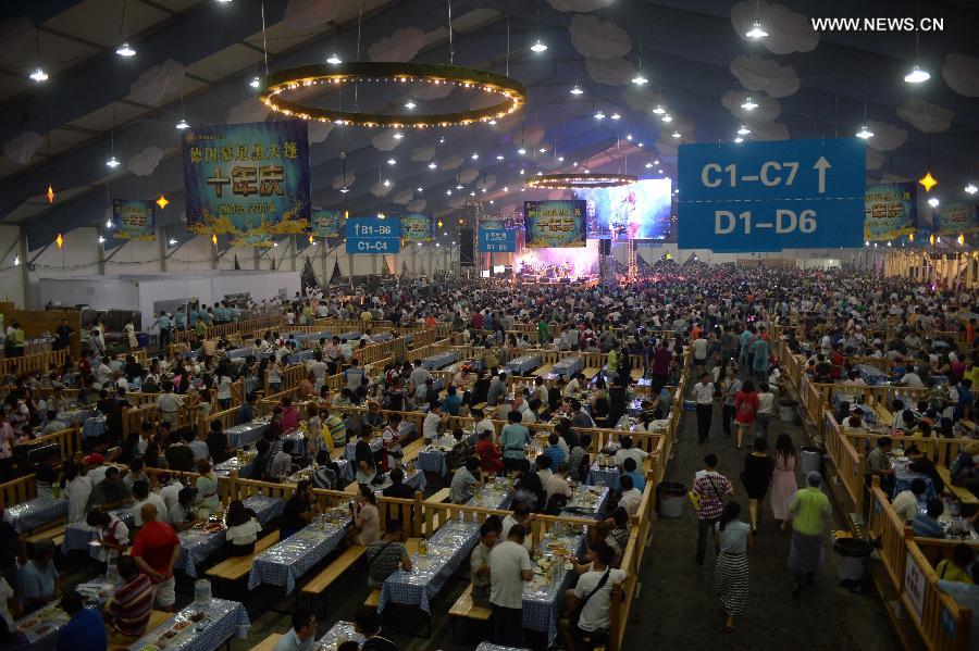 Photo taken on July 24, 2014 shows the scene of the 16th China International Beer Festival in Dalian, northeast China's Liaoning Province, July 24, 2014. The 12-day beer festival opened at Dalian's Xinghai Square Thursday. (Xinhua/Pan Yulong)