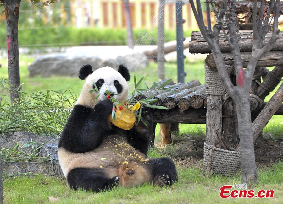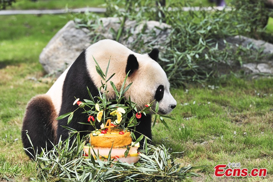 Giant panda Ding Ding celebrates 4th birthday in Jinan (1/6)