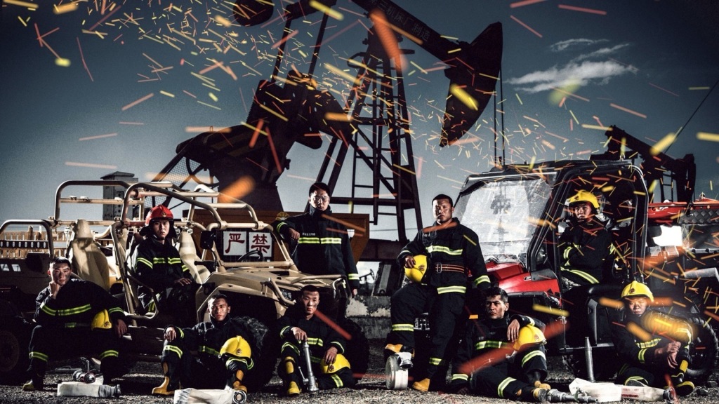 Firefighters pose for a photo shoot for Army Day in Karamay, northwest China's Xinjiang Uygur Autonomous Region, on July 27,2014. (Source:cnr.cn)