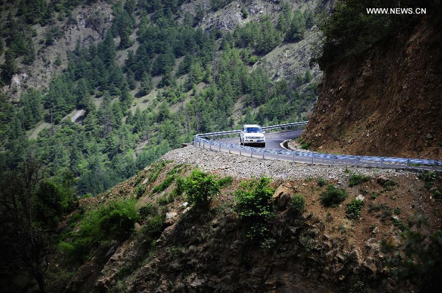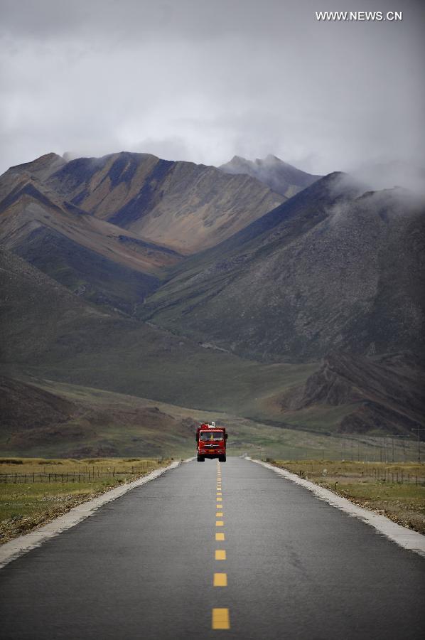 Photo taken on July 6, 2014 shows a highway in Gyirong County, southwest China's Tibet Autonomous Region. China's Ministry of Transport said in a recent guideline that China aims to expand highways in the autonomous region to 110,000 kilometers by 2020. (Xinhua/Liu Kun)